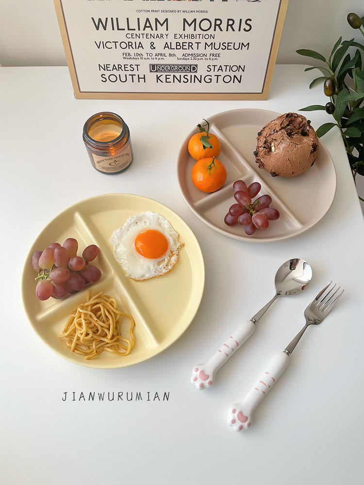 | nameOriginal | 88PD wholesale, Korean-style matte round plate, ceramic three-grid plate, fruit breakfast flat plate |