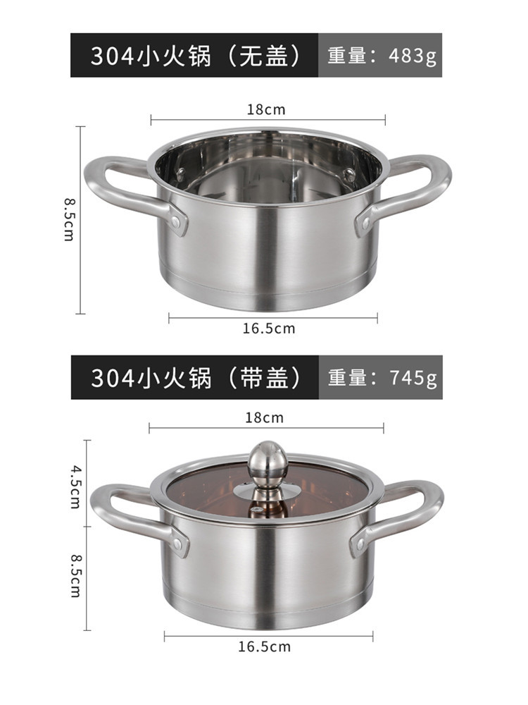 | nameOriginal | 88PD wholesale thickened 304 stainless steel small soup pot commercial double-ear one-person pot hotel hot pot pot induction cooker |