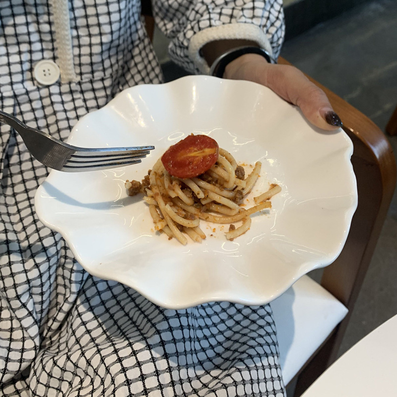 | nameOriginal | 88PD wholesale wave flounced dessert snack plate pasta plate French ins style ceramic plate pure white Breakfast |
