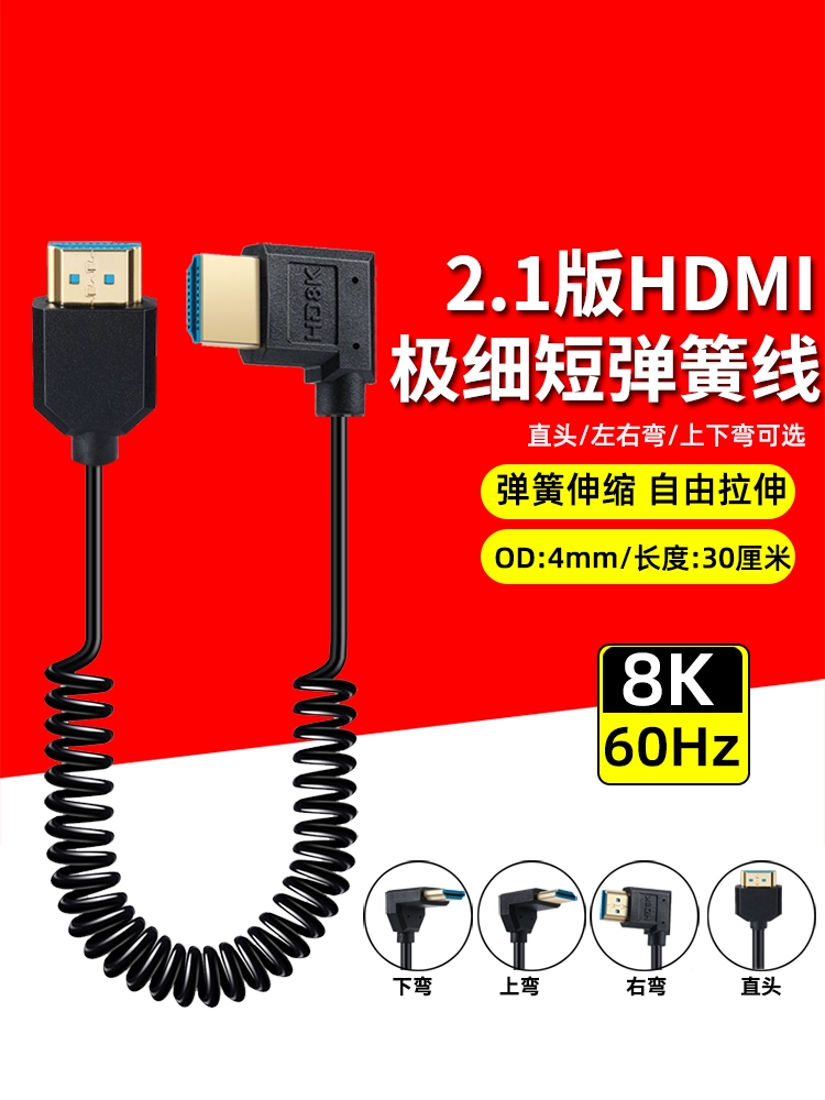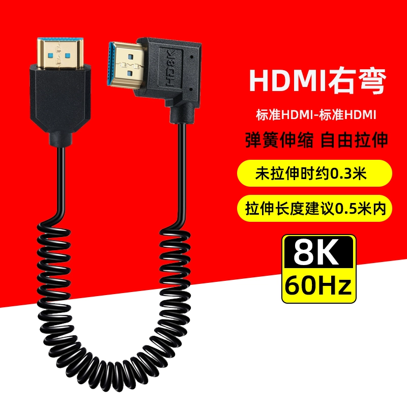 8K@60hz high definition ultra-fine soft HDMI spring wire elbow photography micro-SLR camera stabilizer monitor 4K
