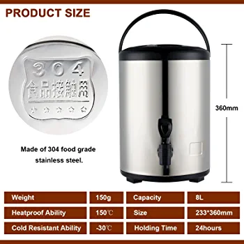 | nameOriginal | Food Grade Stainless Steel Insulated Beverage Dispenser 8L 2.1Gallon Insulated Thermal Hot and Cold Beverage Dispenser for Hot Tea Coffee Cold Milk Water Juice (304 Stainless Steel) |