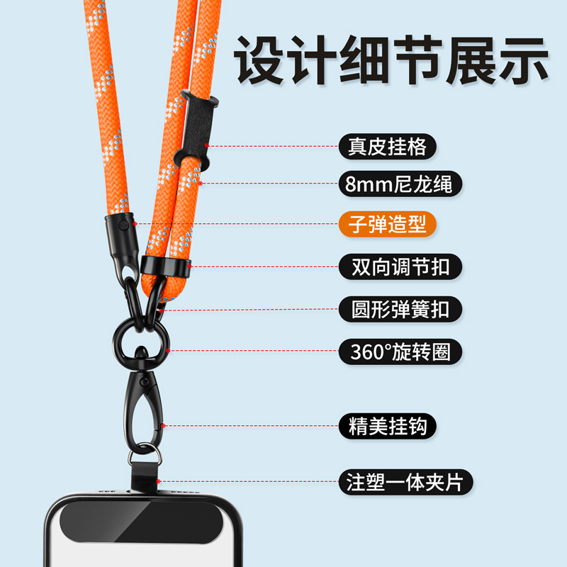 8mm adjustable mobile phone lanyard slung neck outdoor anti-lost phone case rope wrist chain nylon braided rope