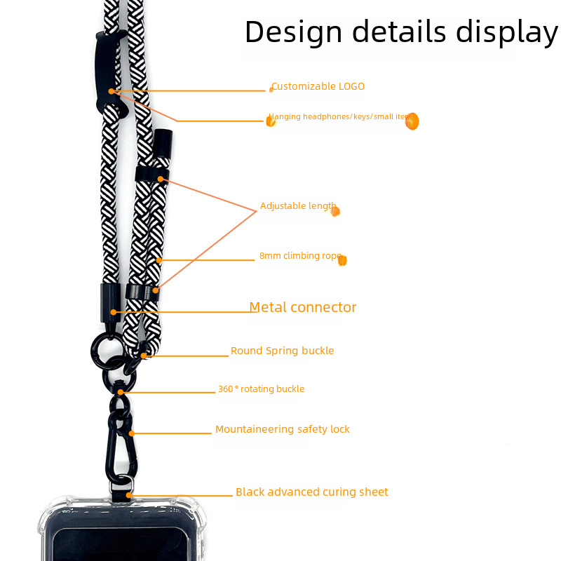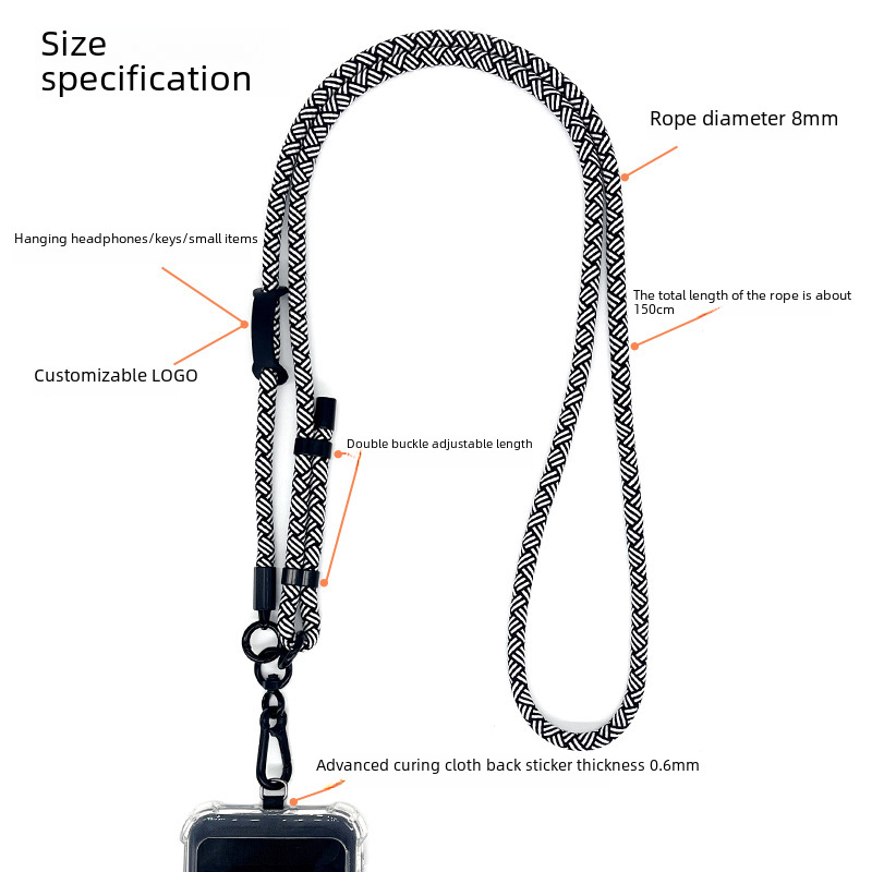 | nameOriginal | 8MM thick rope mobile phone case lanyard gasket retractable adjustable crossbody mobile phone rope outdoor anti-lost neck rope |