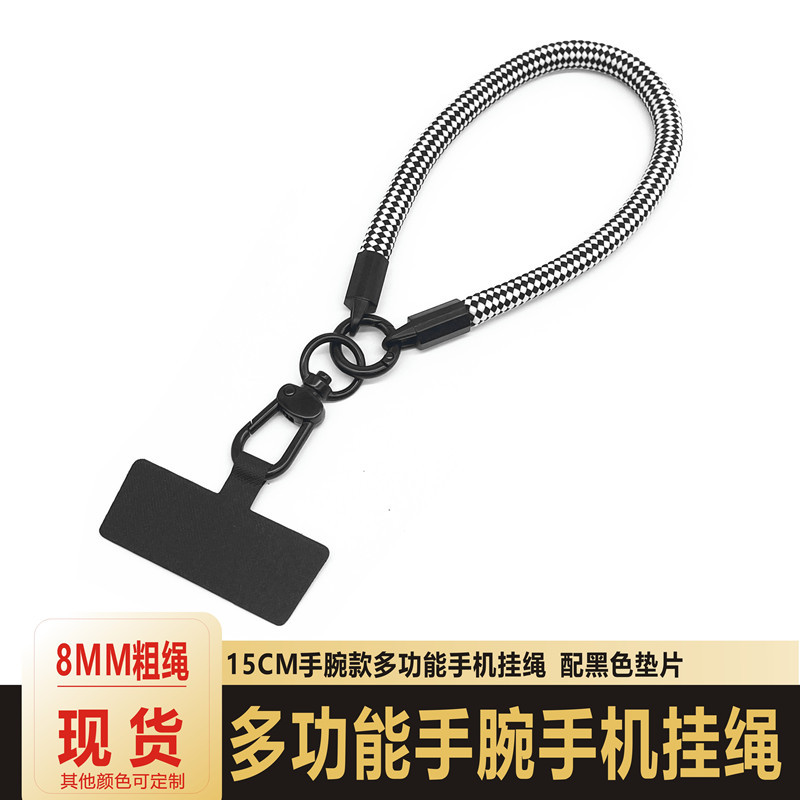 8mm wrist rope mobile phone short rope multi-function short lanyard black patch detachable outdoor anti-lost rope