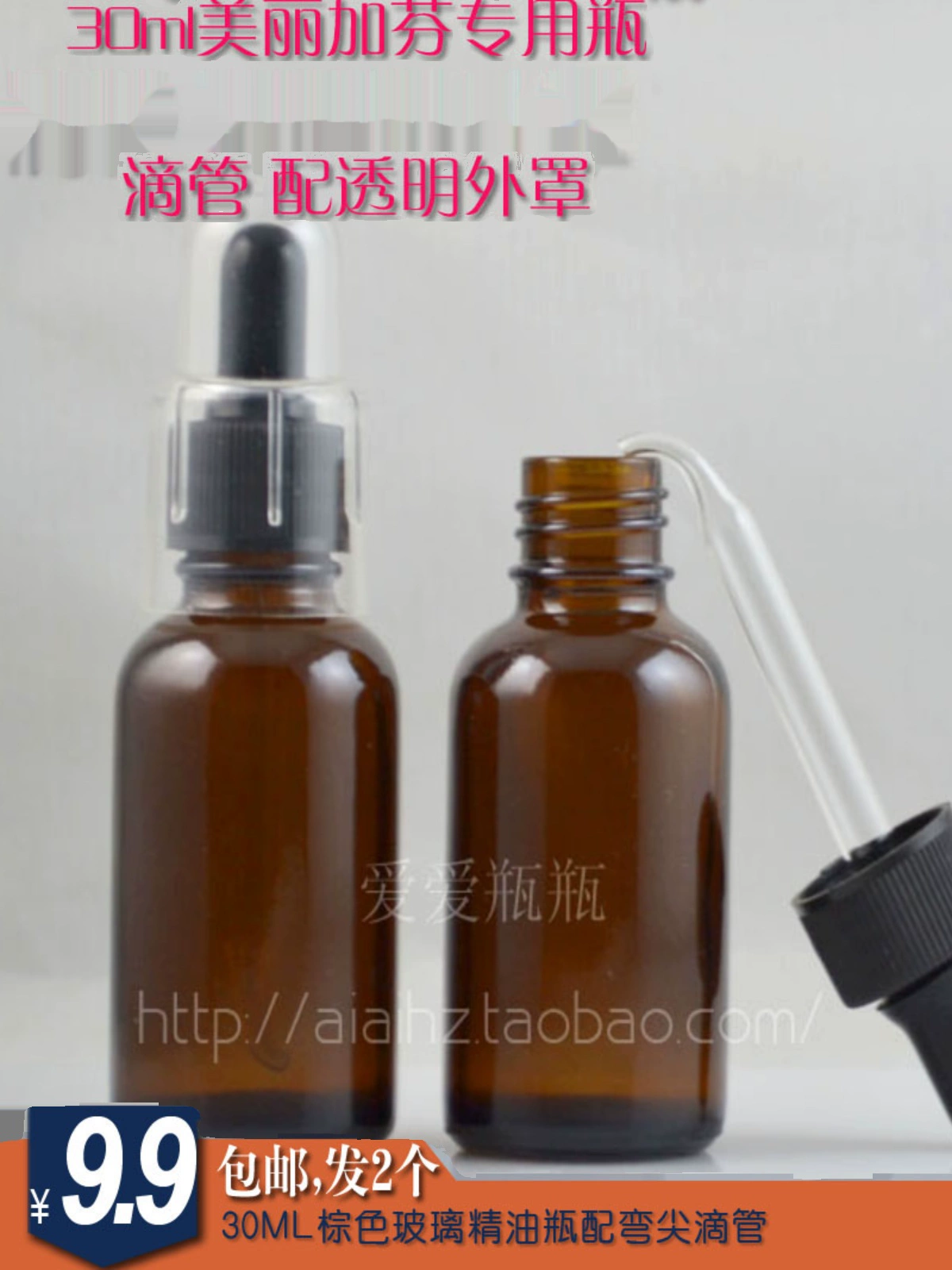 | nameOriginal | 9.9 yuan free shipping for 2 30ML brown essential oil bottles, glass bottles with transparent cover, dropper bottle, essence refill bottle |