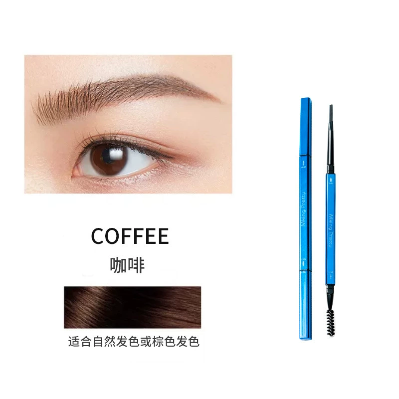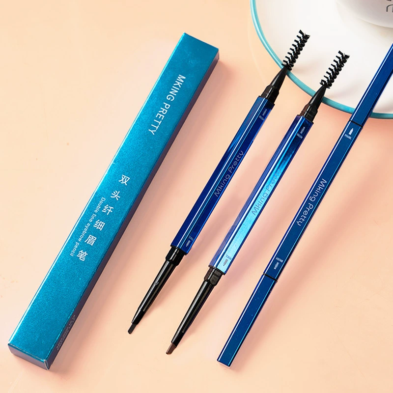 9.9 Yuan Small Blue Chopsticks Eyebrow Pencil Square Tube Ultra-Fine Refill Small Gold Bar Double-ended Eyebrow Pencil Waterproof, Sweatproof, Long-lasting and Easy to Color