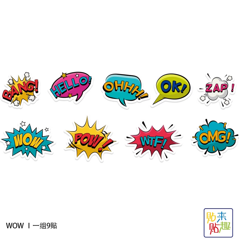 | nameOriginal | 9 pieces of fun letters OMG stickers for mobile phones, guitars, glass, ipad laptops, waterproof decorative stickers |