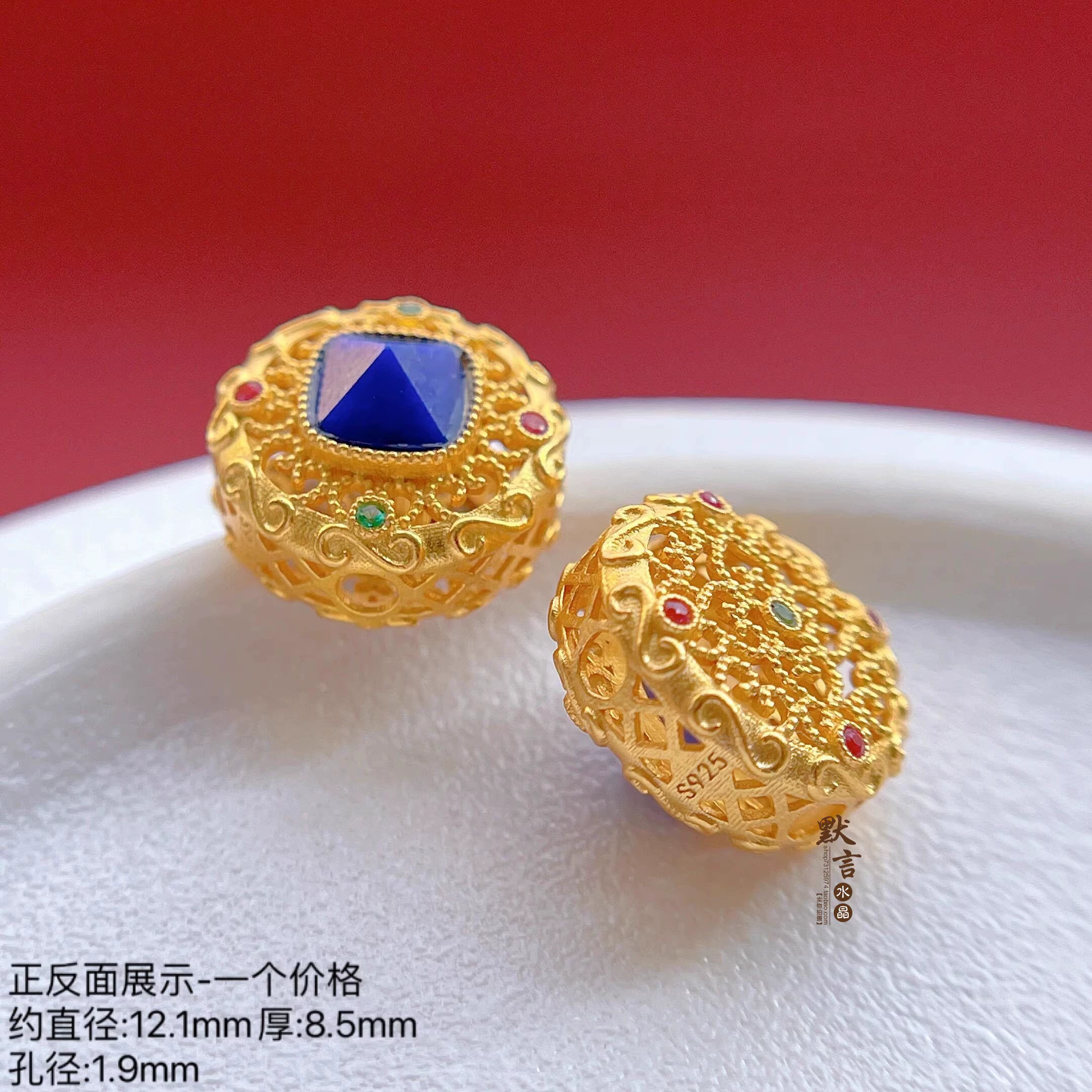 | nameOriginal | 925 antique silver gold-plated accessories inlaid with natural lapis lazuli barrel beads separated by beads and cloud pendant DIY bracelet extension chain |