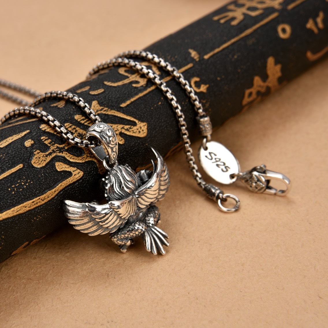 925 Silver Dapeng Goldwinged Bird Pendant Carlou Bird Kunpeng Spreadwing Necklace Pendant Personalized National Tide Birthday Gift