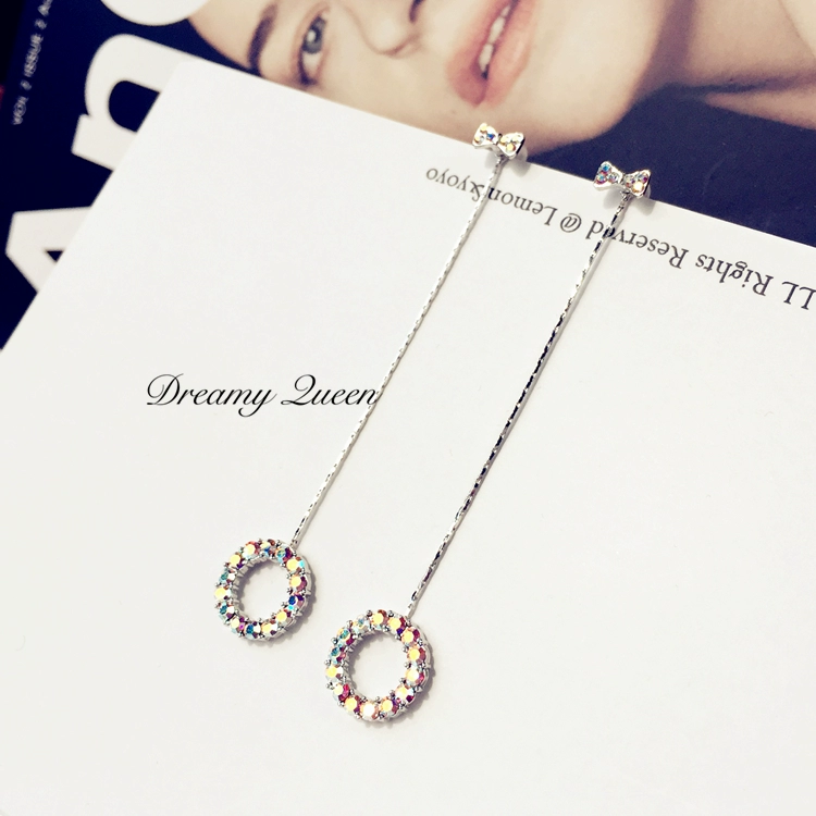 | nameOriginal | 925 Silver Needle Korean Color Diamond Hollow Circle Earrings Fashion Bow Small Circle Long Style Versatile Earrings |