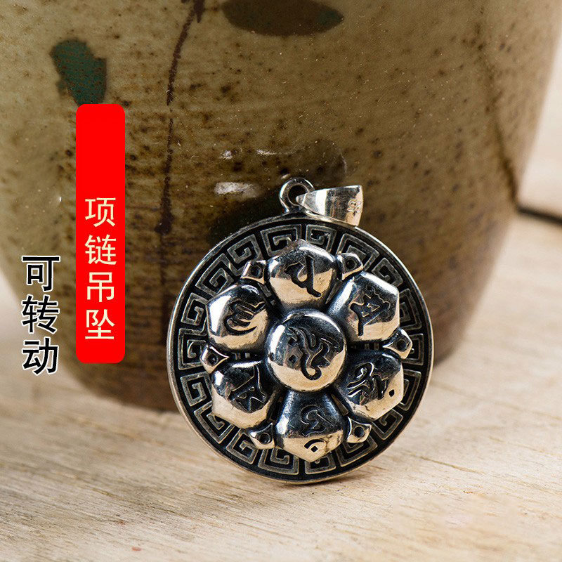 | nameOriginal | 925 silver pendant Tibetan jewelry ethnic style home rotating lotus portable pendant |