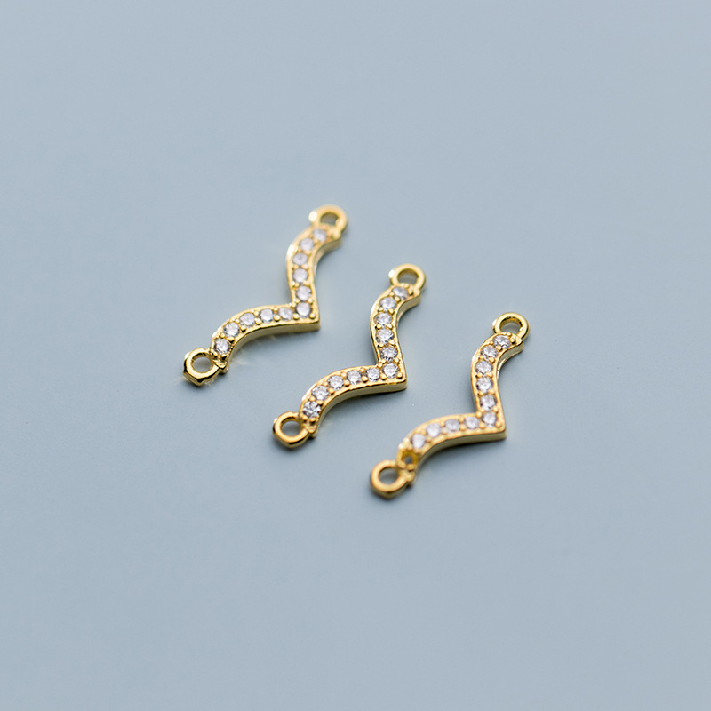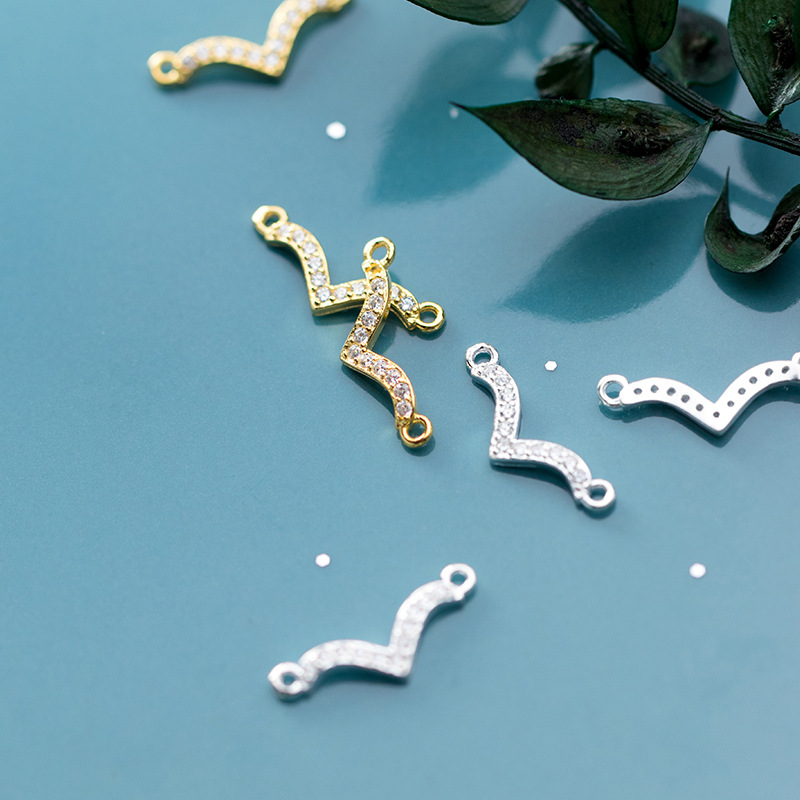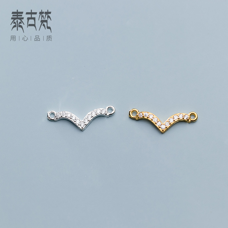 925 silver plating gold micro inlaid zircon Joker double hole seagull pendant handmade DIY jewelry accessories wholesale Q0276