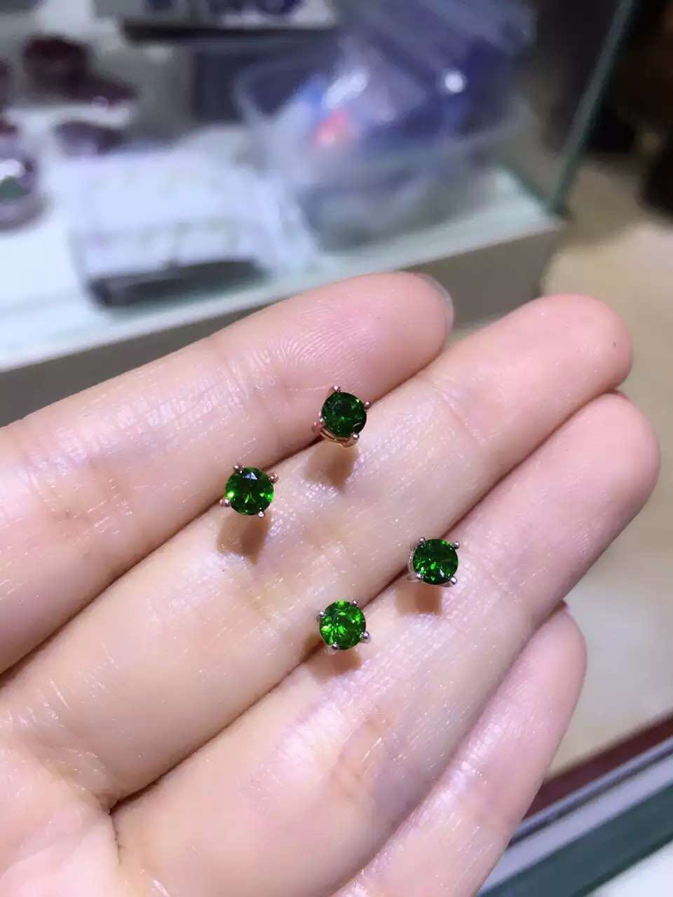 | nameOriginal | 925 silver set with natural diopside earrings 4*4mm granny green gemstone earrings four-claw earrings |