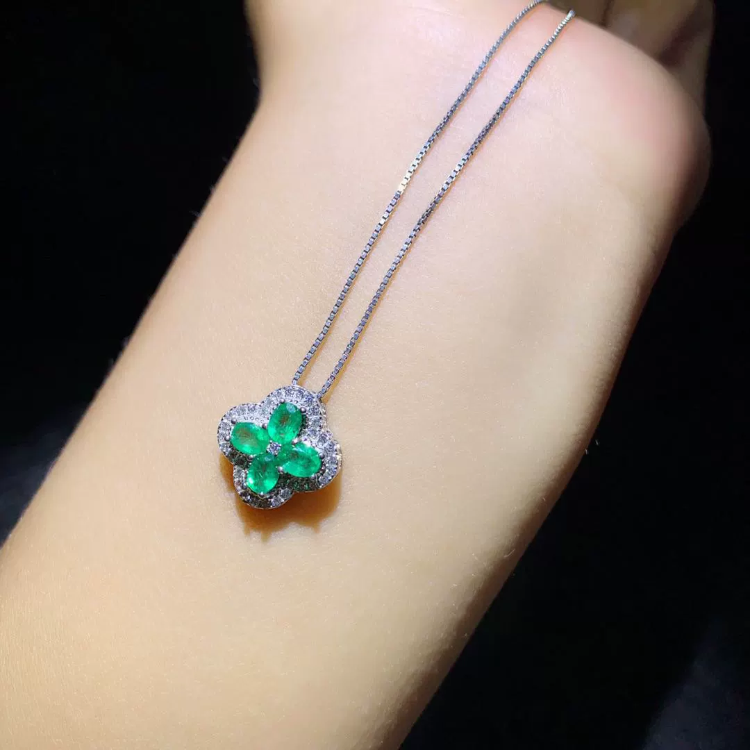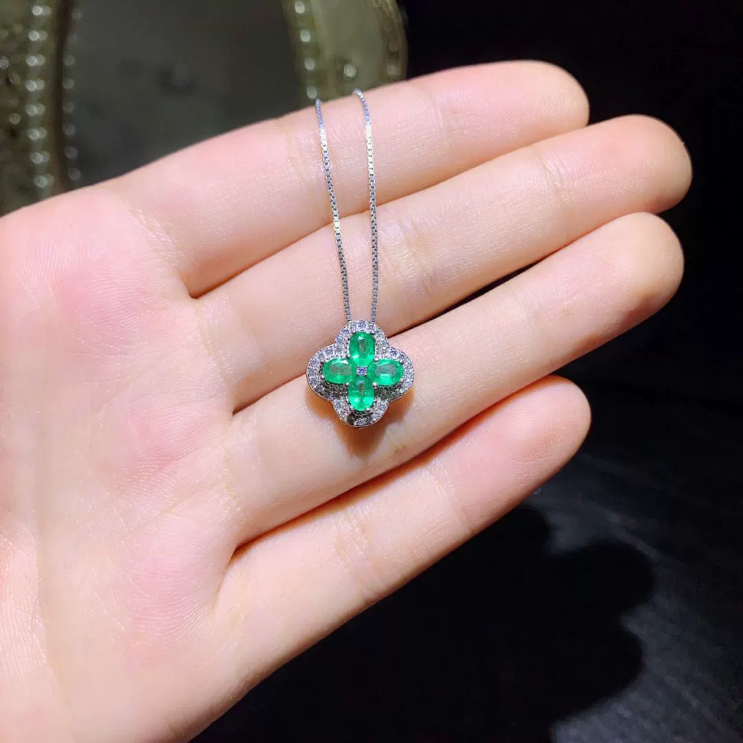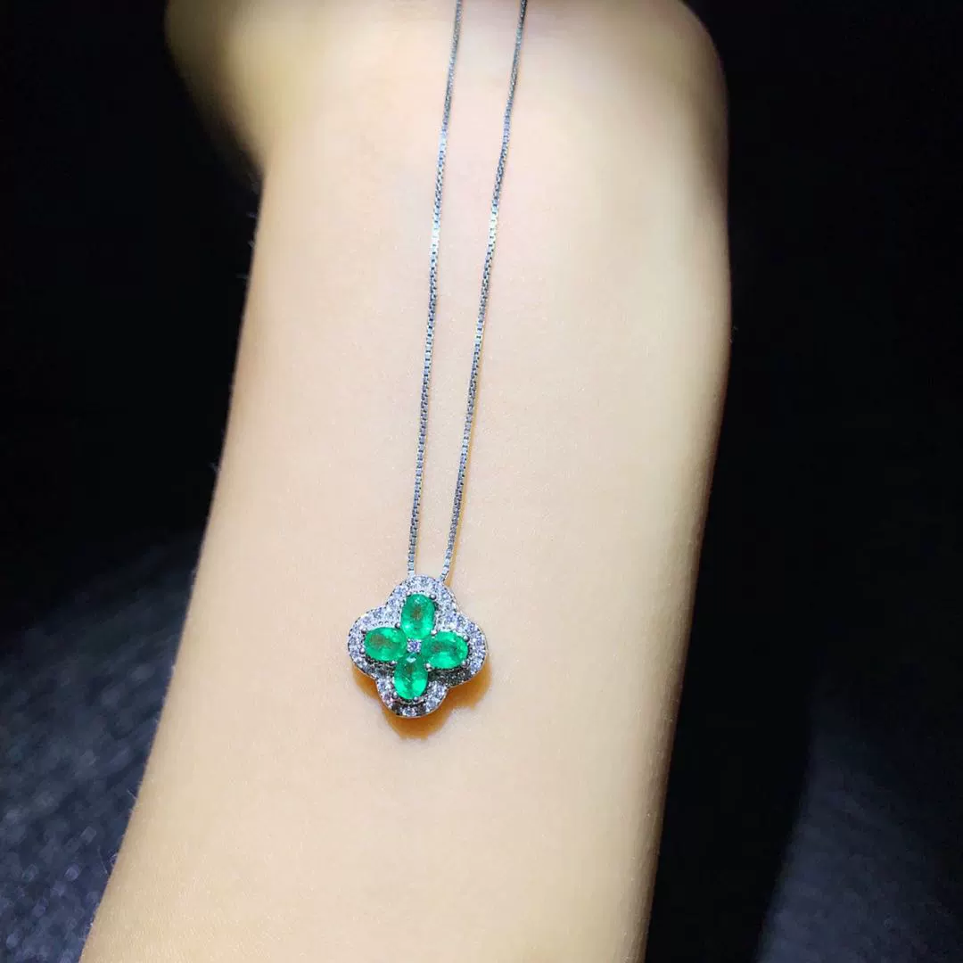 | nameOriginal | 925 silver set with natural emerald pendant, stone size 3*4, special offer, small fresh clover pendant, free necklace |
