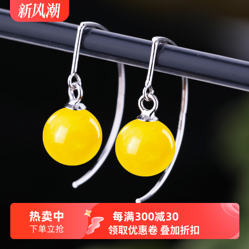 | nameOriginal | 925 sterling silver ball earrings, beeswax amber earrings, silver earrings, inlaid with 7 to 10 ball beads, earrings for girls |