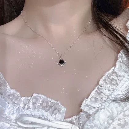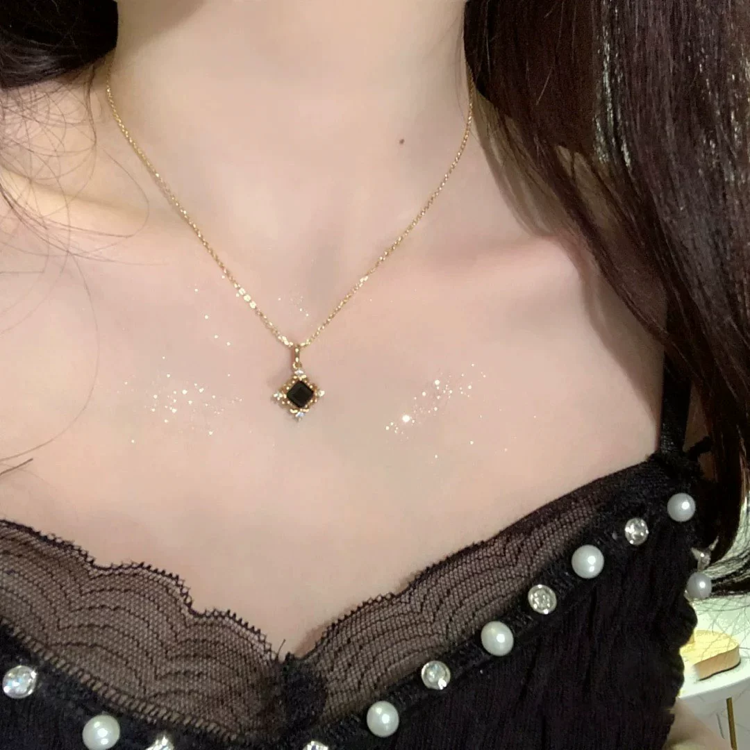 925 sterling silver brown sugar with iron necklace light luxury design sense pendant 2024 new high -end sweater chain female