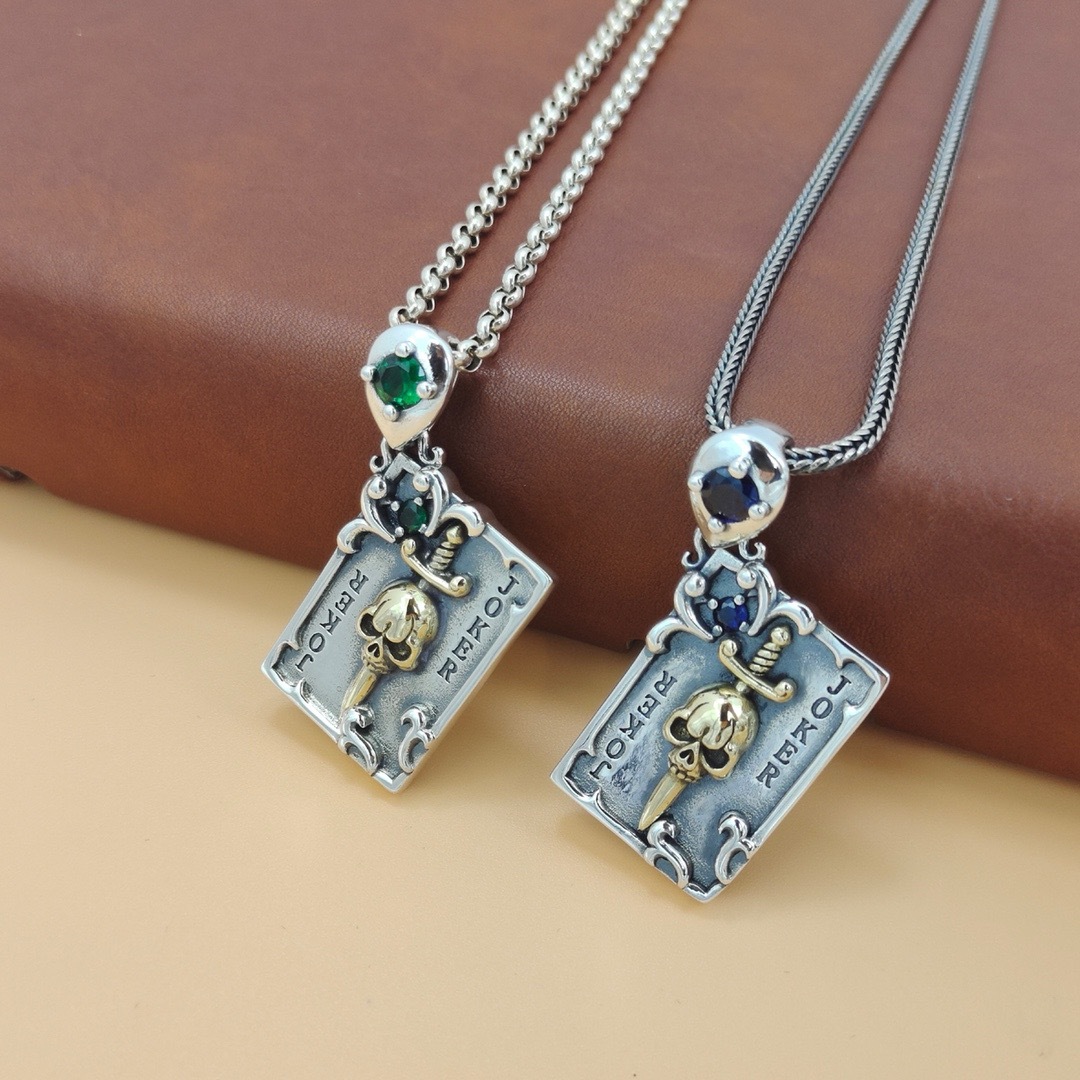 | nameOriginal | 925 Sterling Silver Distressed Stone Poker Pendant Niche Personalized Square Skull Pendant Men's Tide-style Silver Accessories |