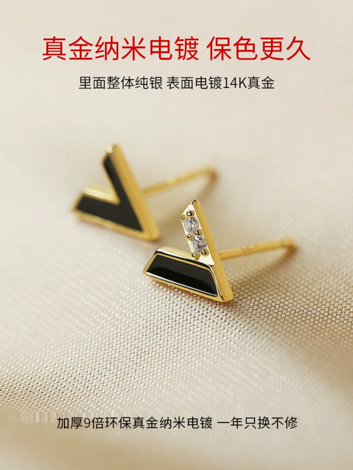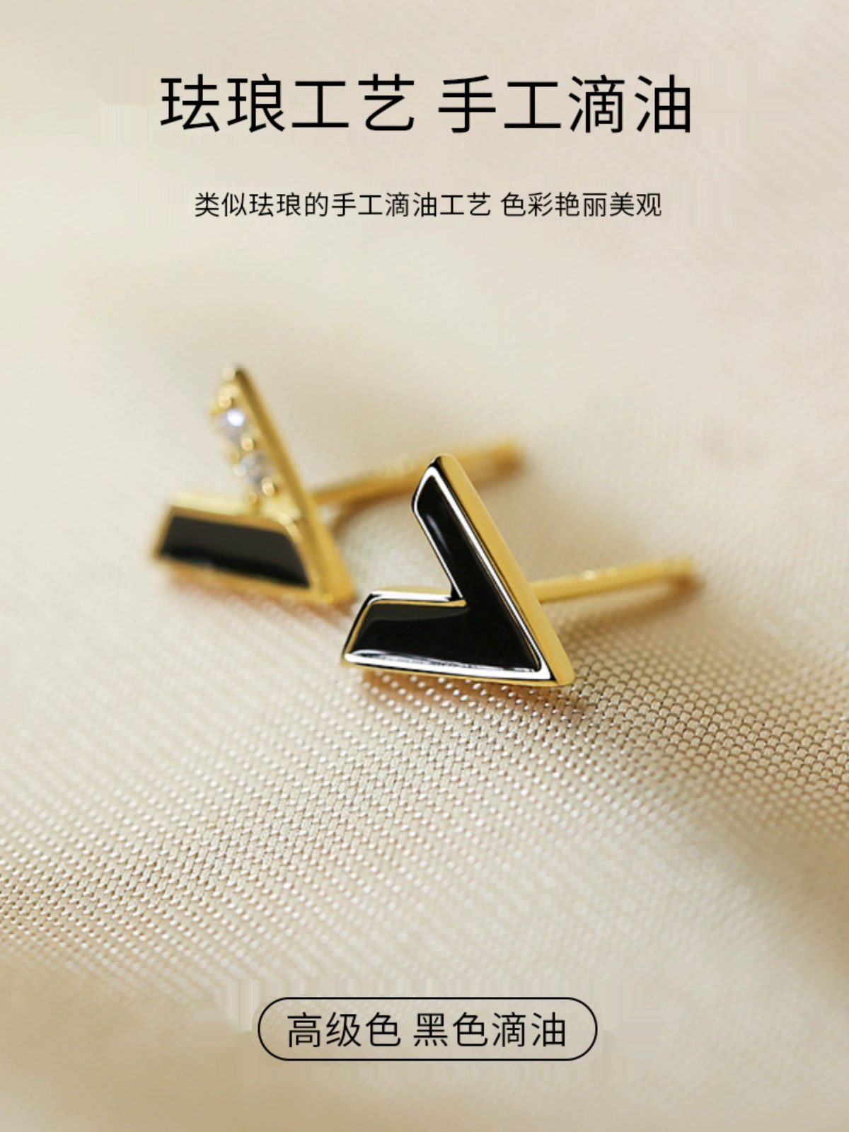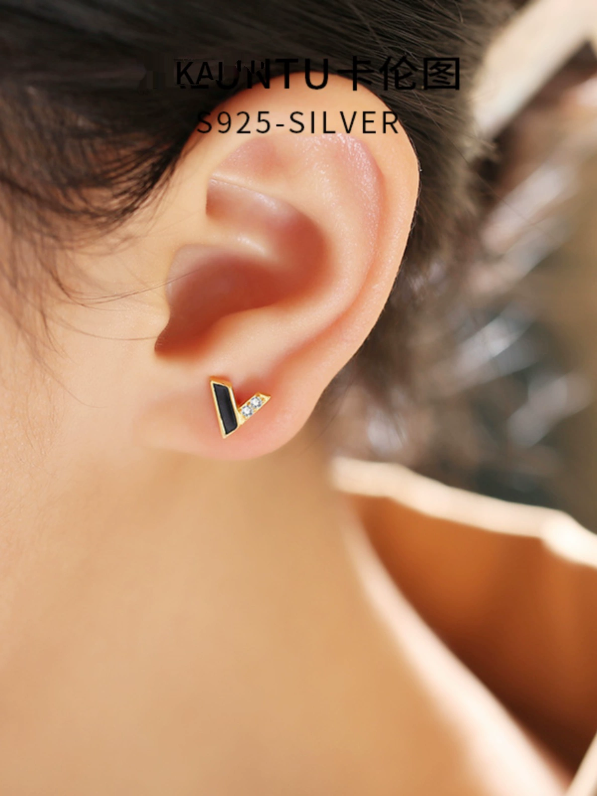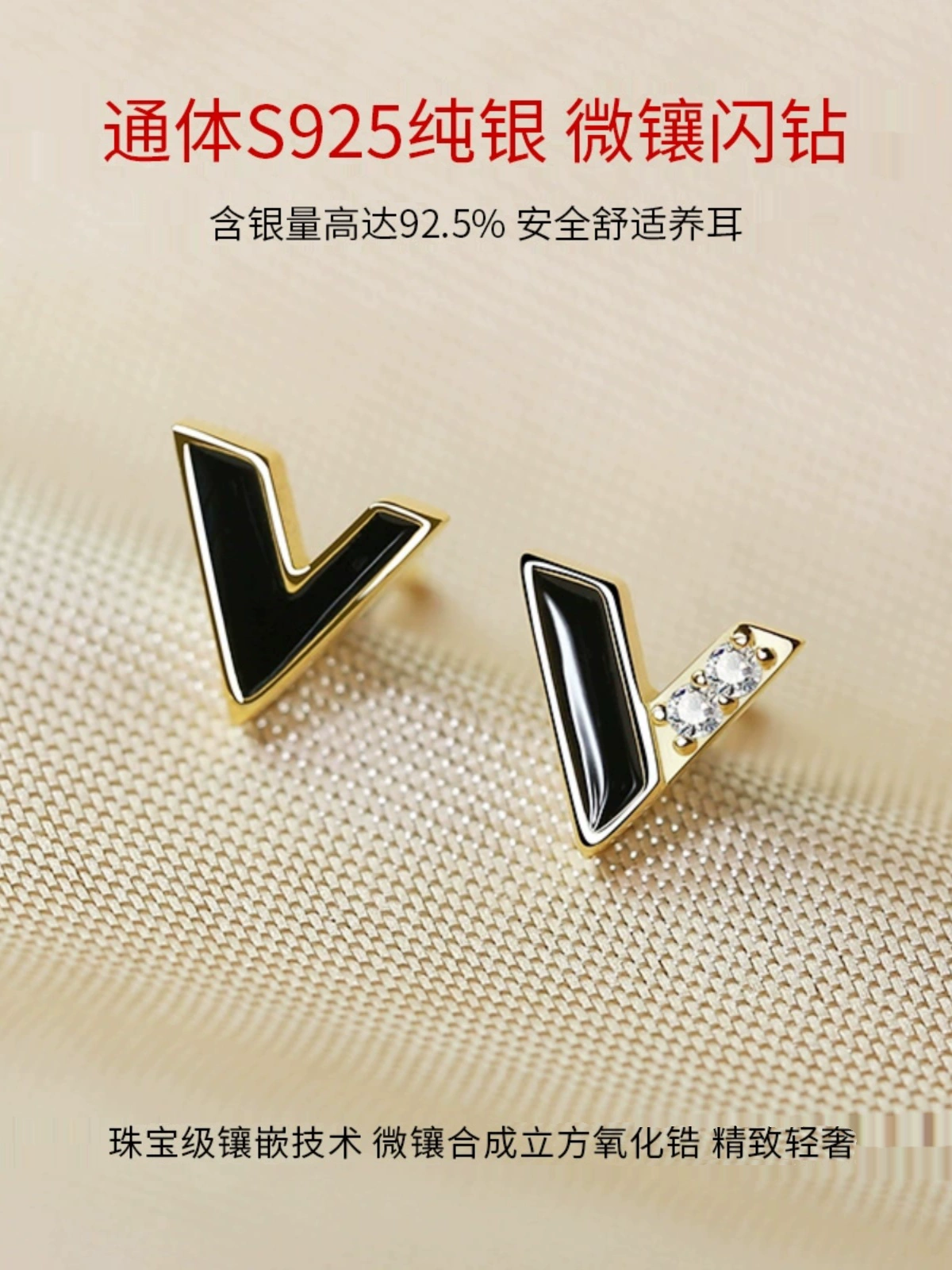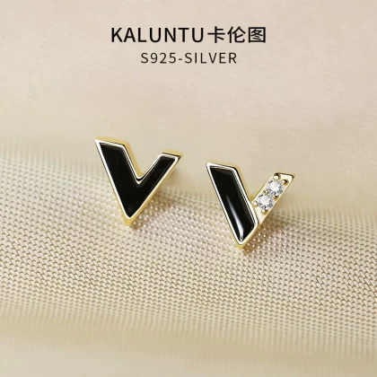 | nameOriginal | 925 sterling silver earrings for women black letter V earrings small and exquisite asymmetrical personalized silver earrings 2023 new style |