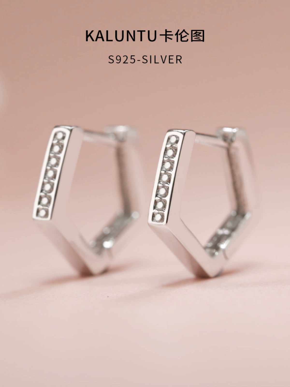 | nameOriginal | 925 sterling silver earrings for women, geometric pentagonal straight pin earrings, high-end earrings for sleeping, no-picking ear piercing earrings |