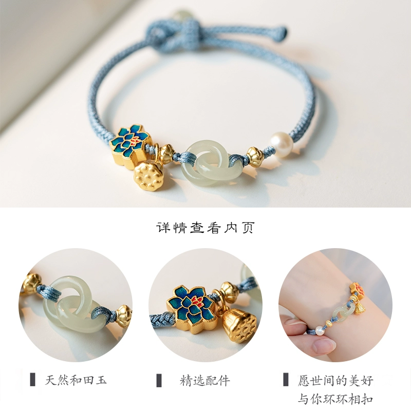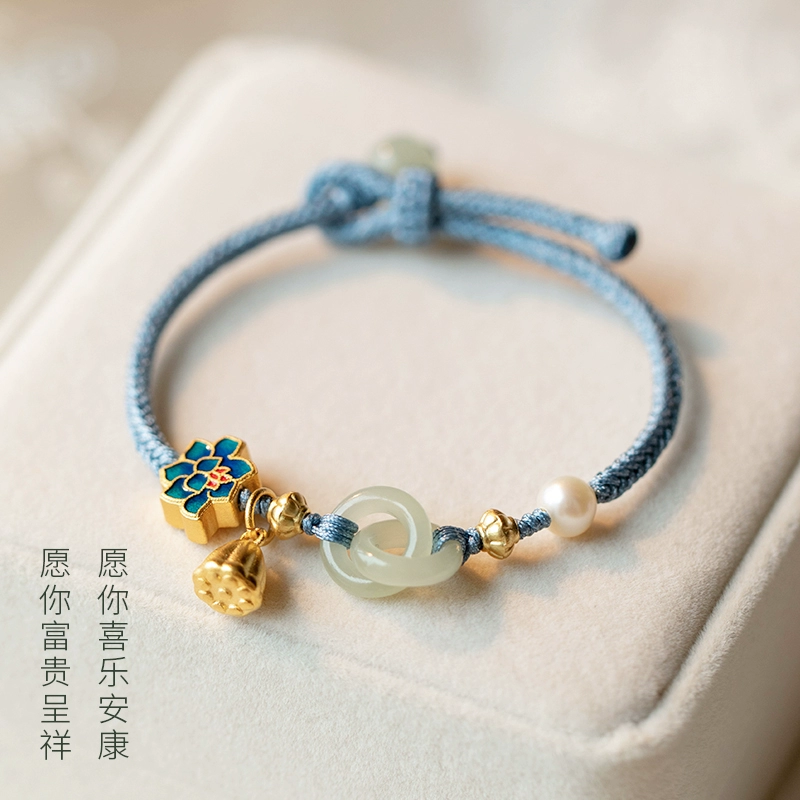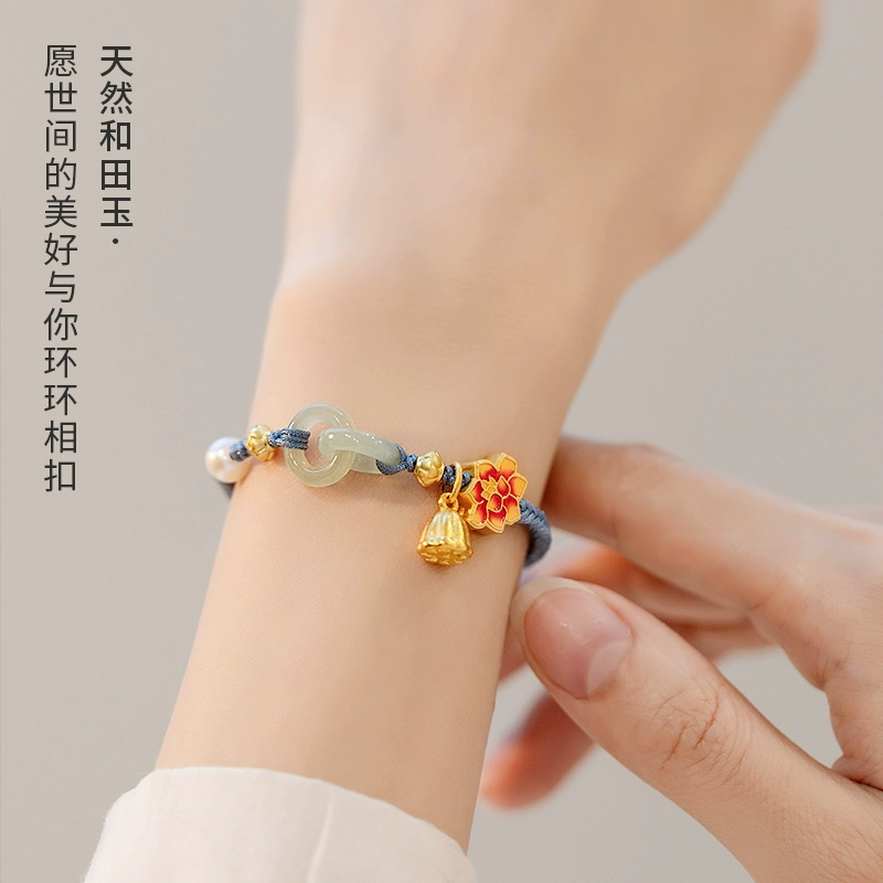| nameOriginal | 925 sterling silver Hetian jade safety buckle bracelet for girls ins niche design interlocking pearl light luxury bracelet |