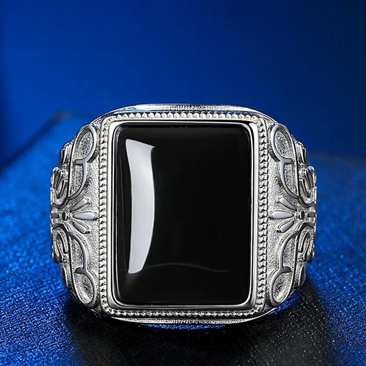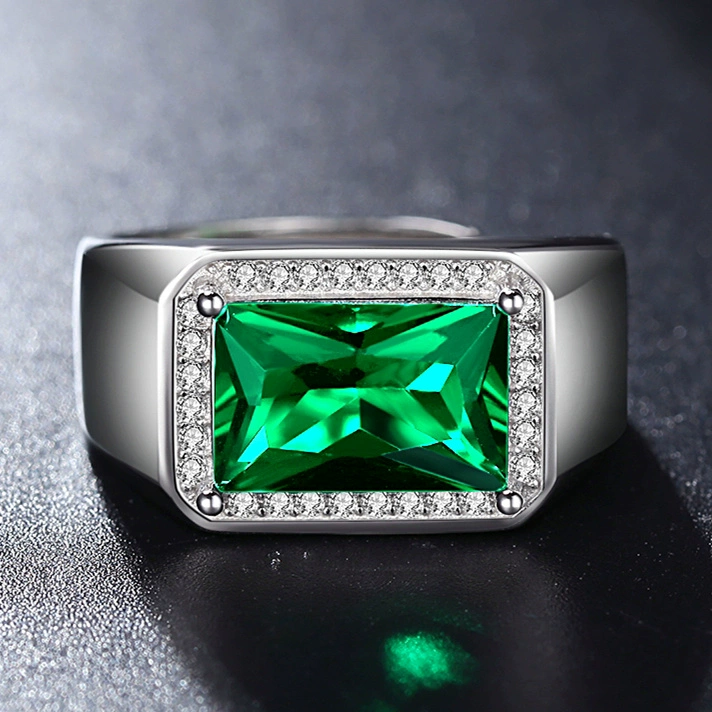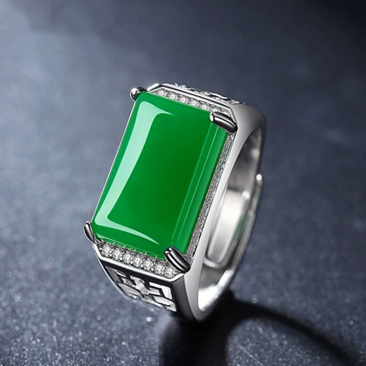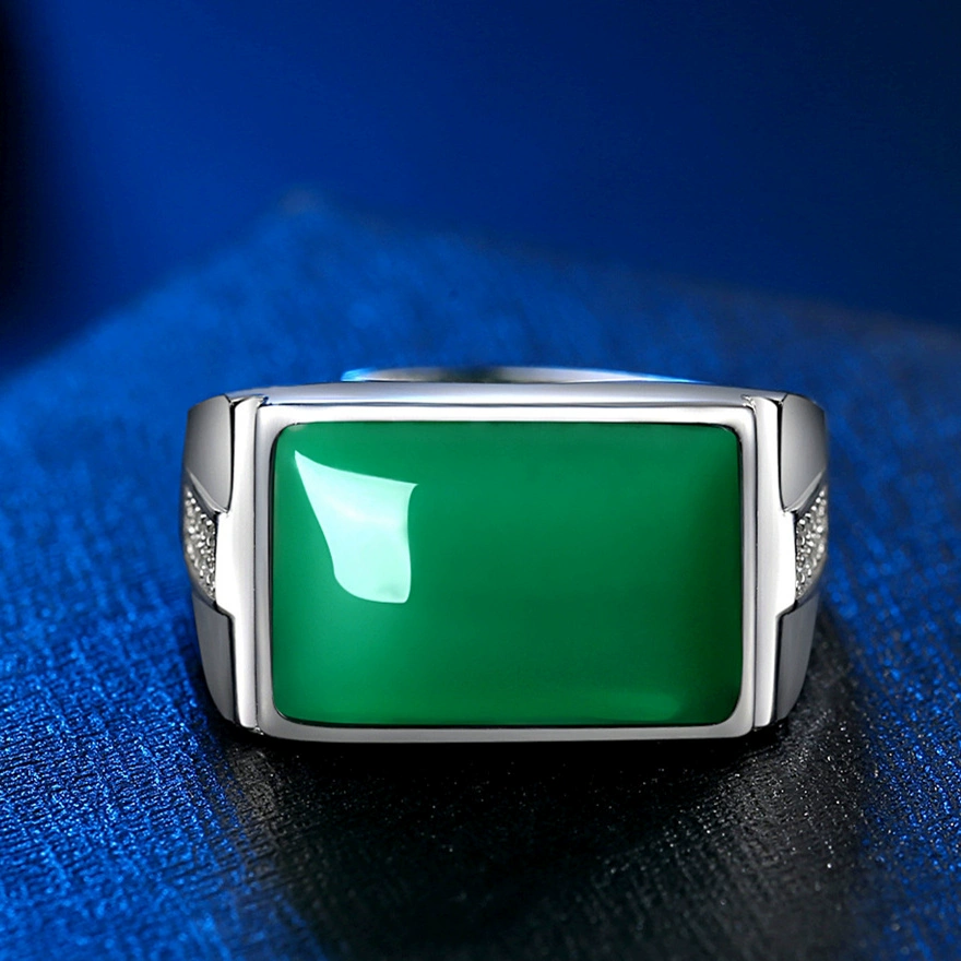 925 Sterling Silver Men's Antique Chrysoprase Open Ring