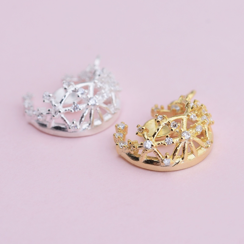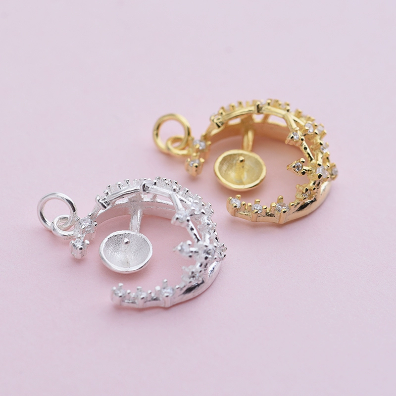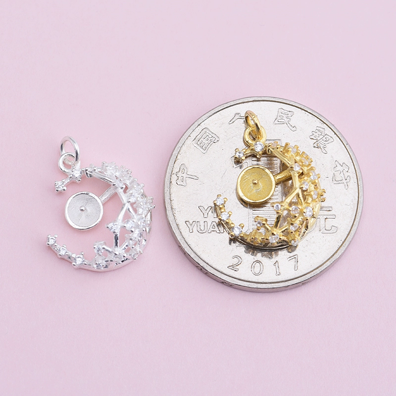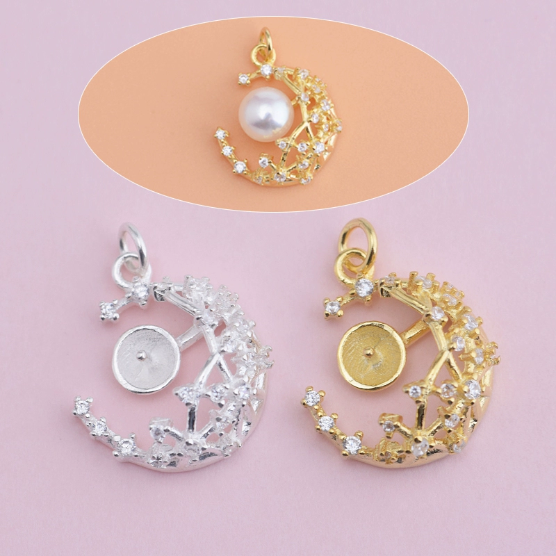 | nameOriginal | 925 sterling silver micro-paved zircon DIY accessories Fish Tears Star and Moon empty tray pendant Hollow small tray pendant |