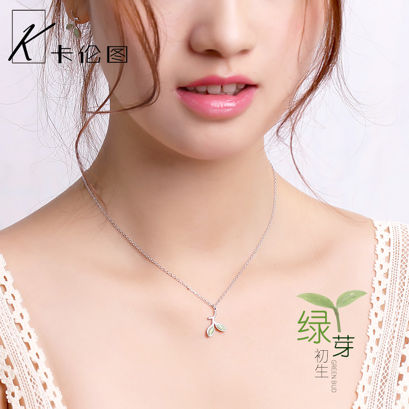 | nameOriginal | 925 sterling silver necklace women's small fresh green bud cat's eye pendant simple niche clavicle chain forest set chain |