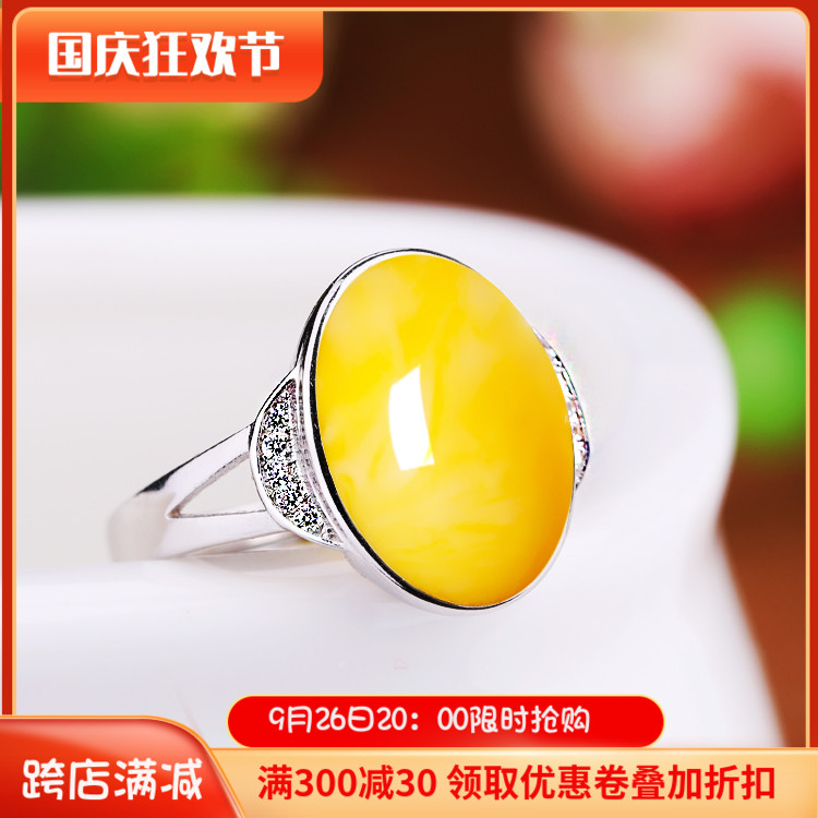 | nameOriginal | 925 sterling silver platinum-plated women's open ring holder inlaid with amber beeswax diy oval ring empty holder 10*14 |