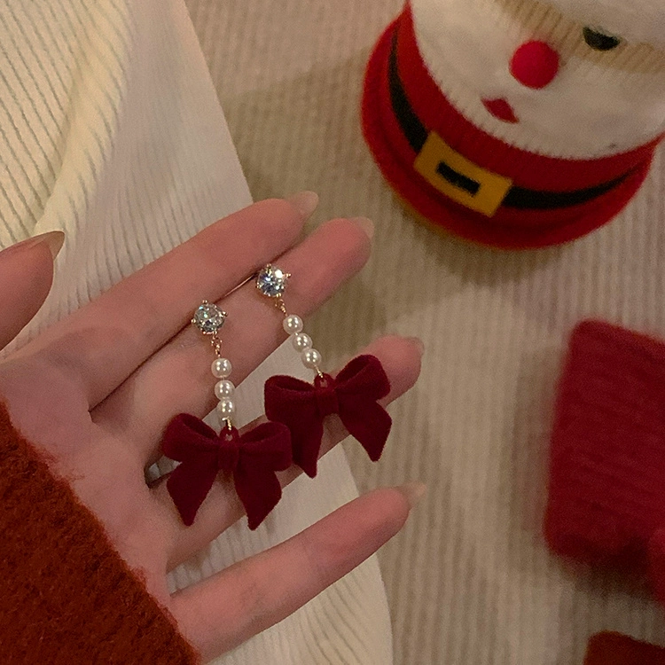 | nameOriginal | 925 sterling silver red bow earrings 2024 new popular Christmas earrings niche design high-end earrings for women |