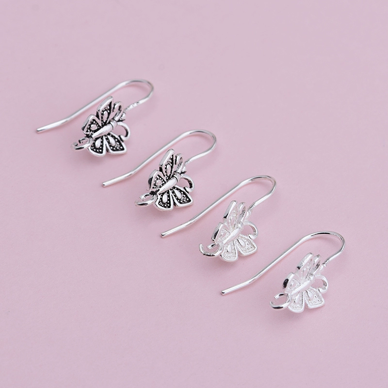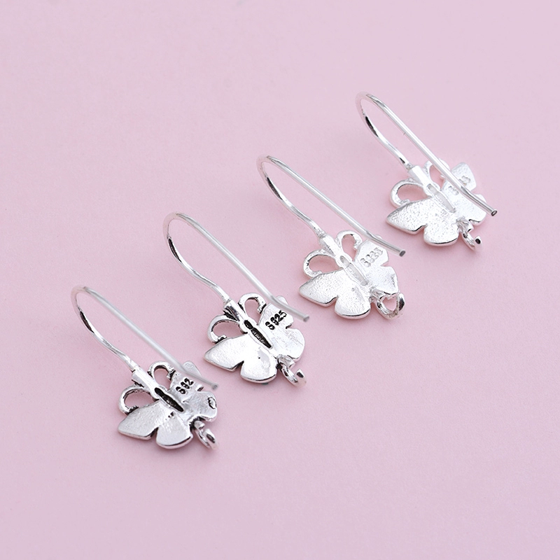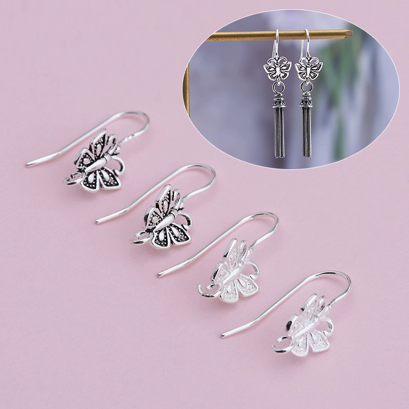 925 sterling silver Thai silver ear hooks for women, retro butterfly earring accessories, handmade diy ear jewelry semi-finished accessories