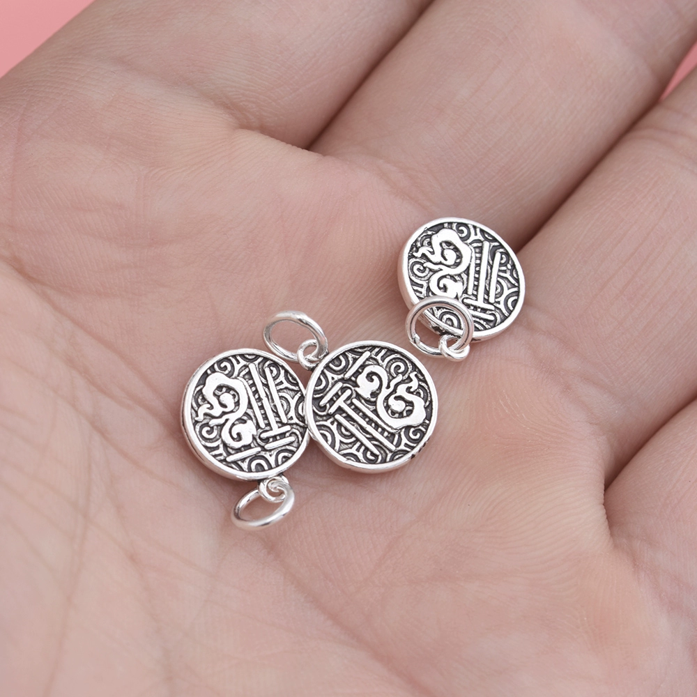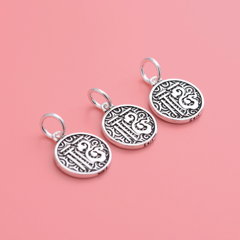 | nameOriginal | 925 sterling silver Thai silver jewelry pendant accessories blessing round plate pendant handmade diy bead material pendant |