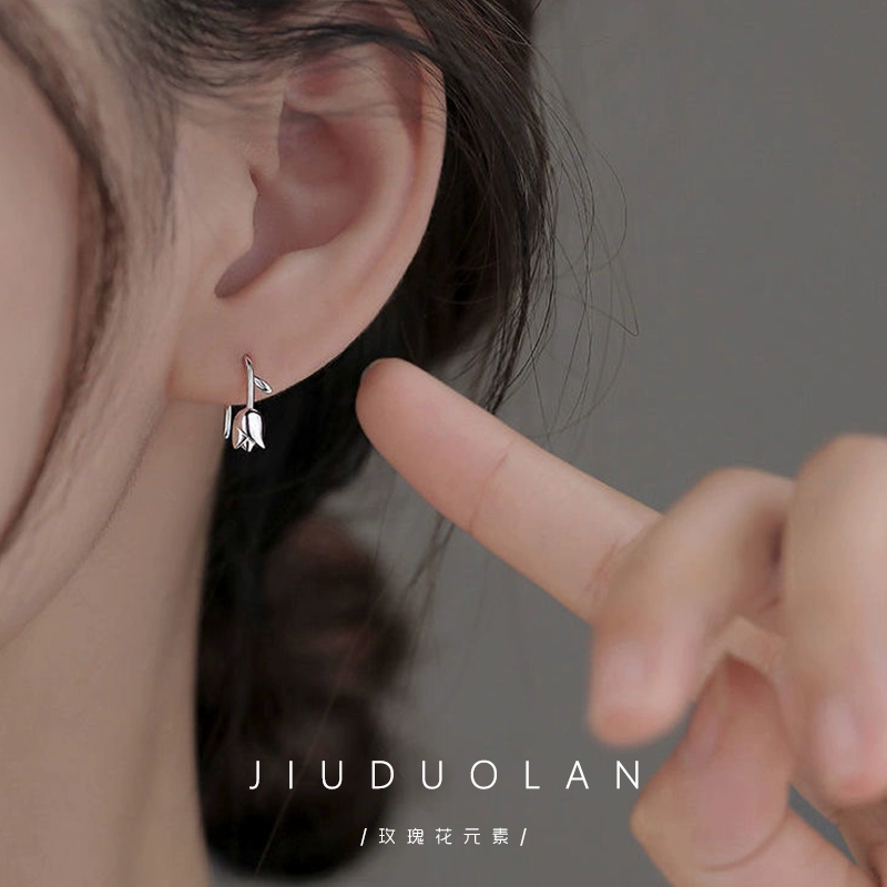 925 sterling silver tulip ear hooks, light luxury, no need to remove, high-end earrings, 2024 new trendy niche earrings