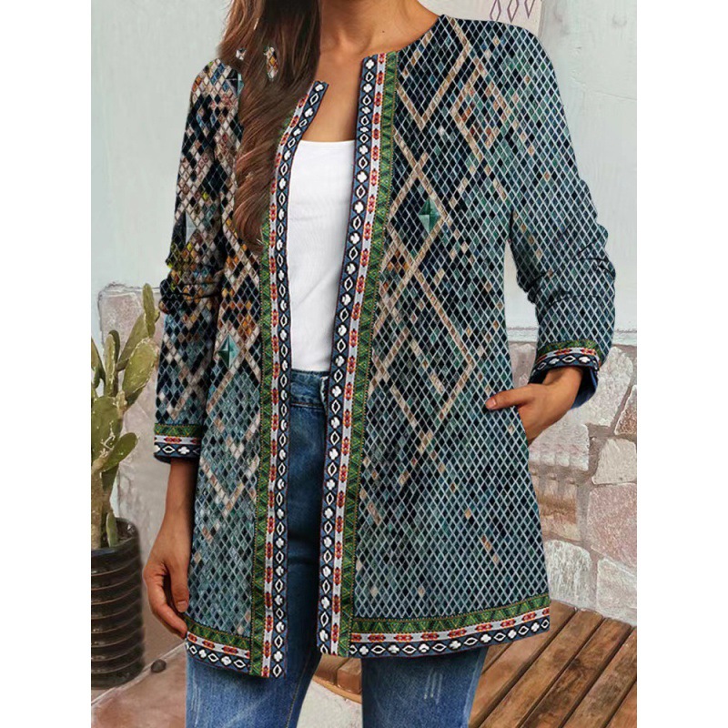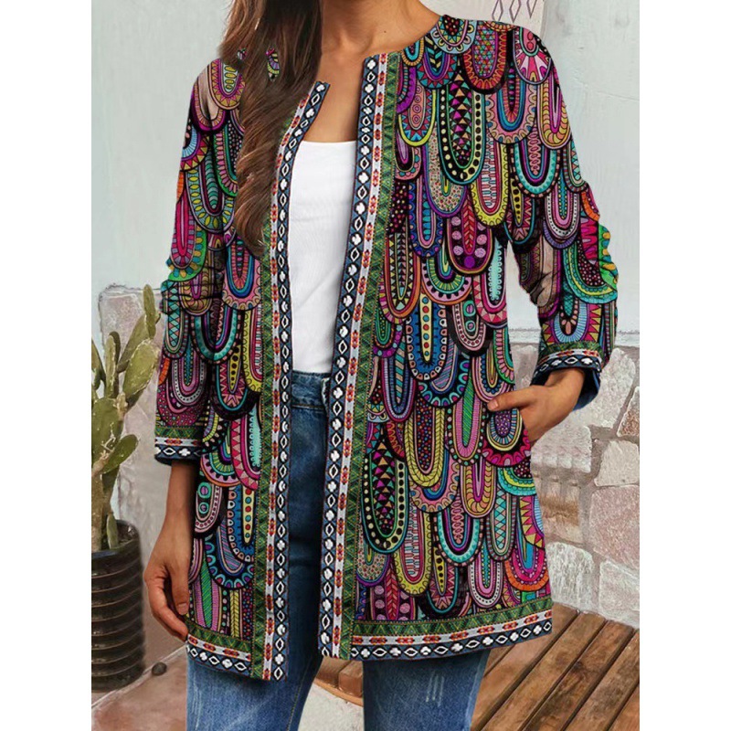 9399# Foreign trade cross-border autumn and winter New retro ethnic style printed long-sleeved coat jacket cardigan women's top