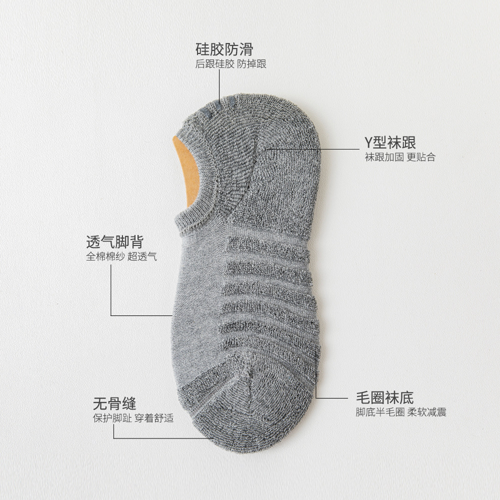 | nameOriginal | 95% Cotton Men's Towel Bottom Boat Socks Solid Color Silicone Non-Slip Deodorant Boneless Trash Socks Pure Cotton Shallow Mouth Invisible Socks |