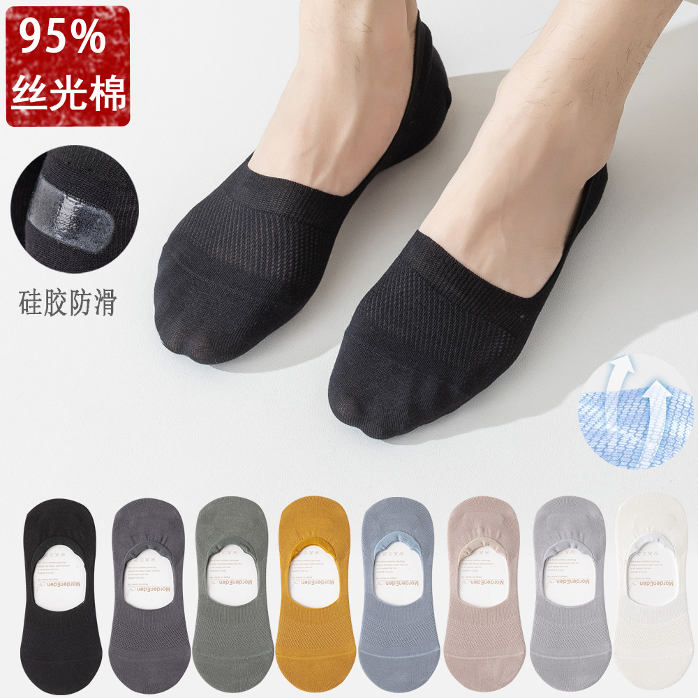 | nameOriginal | 95% Cotton Summer Solid Color Thin Socks Combed Cotton Men's Socks Mesh Shallow Mouth Invisible Socks Non-slip Deodorant Pure Cotton Boat Socks |