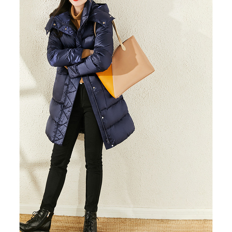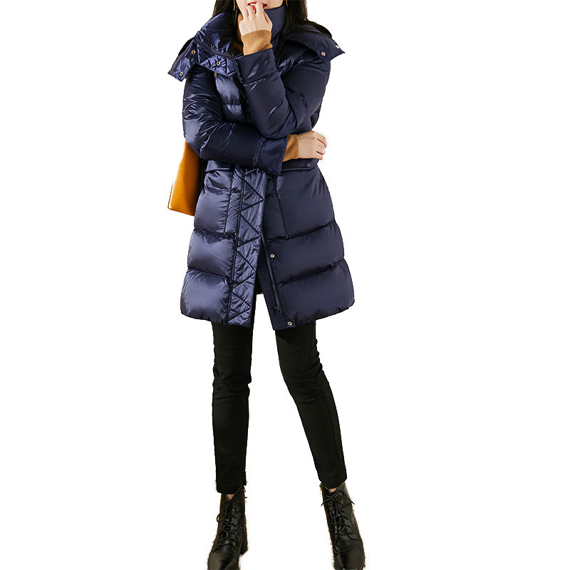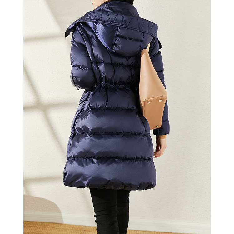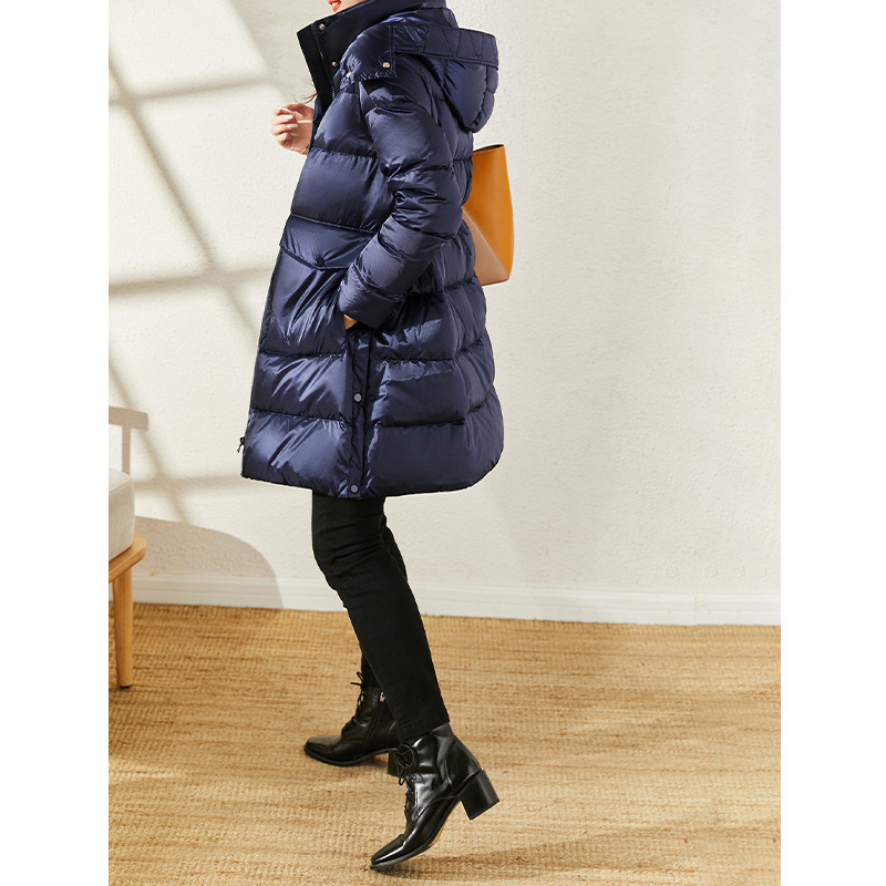 95 white goose down waist down jacket hooded long 2023 new ladies goose down Klein Blue bread clothing