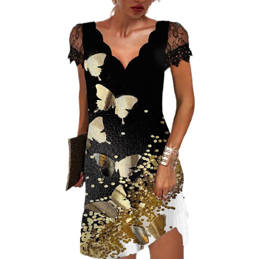 | nameOriginal | 9782#2023 cross-border ebay independent station new best selling positioning printed wave V-neck lace short sleeve dress |