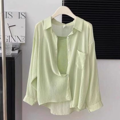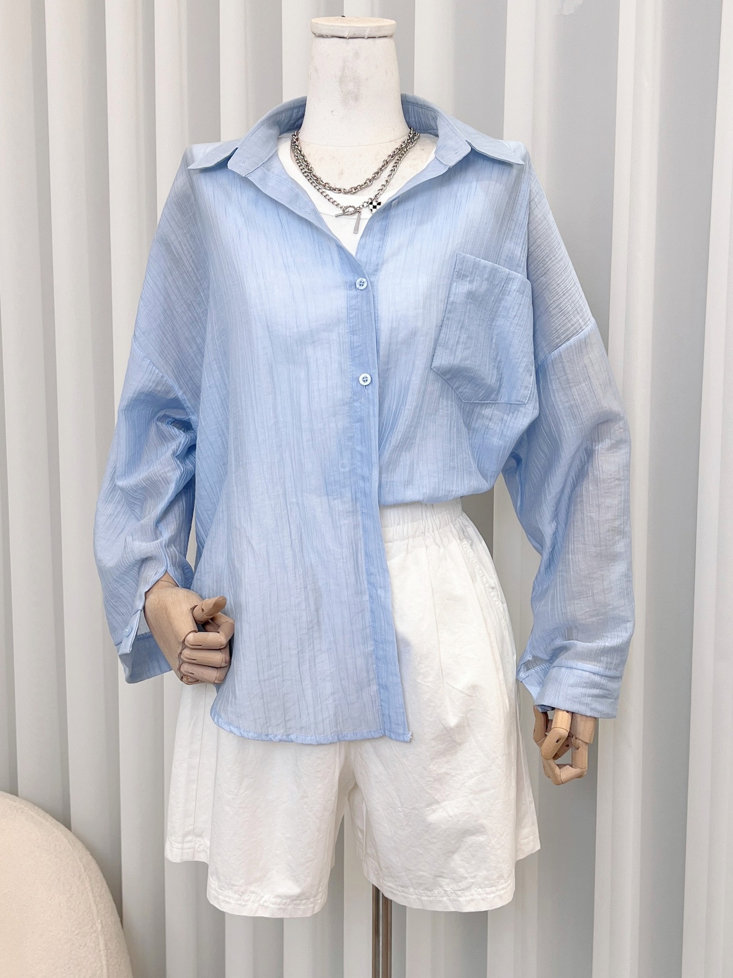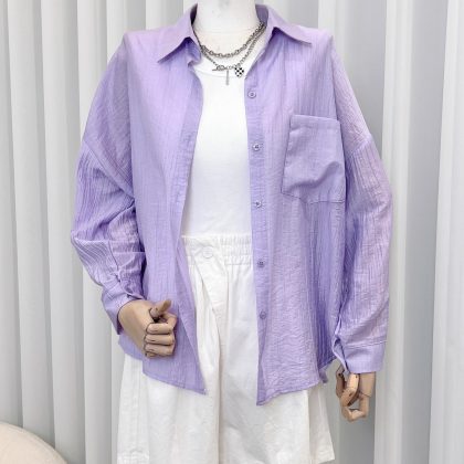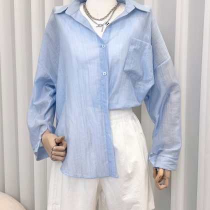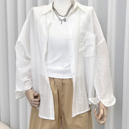 99563 Sunscreen Shirt Women’s Thin Outer Cardigan Small Shirt Jacket Summer Day Long Loose Top#