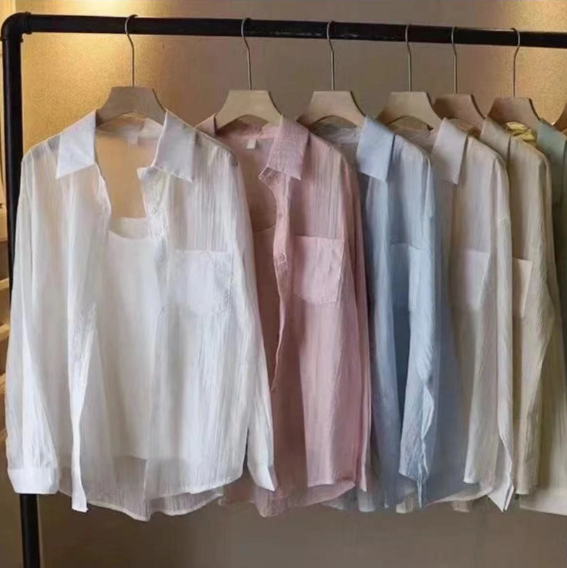 99563 Sunscreen Shirt Women's Thin Outer Cardigan Small Shirt Jacket Summer Day Long Loose Top#