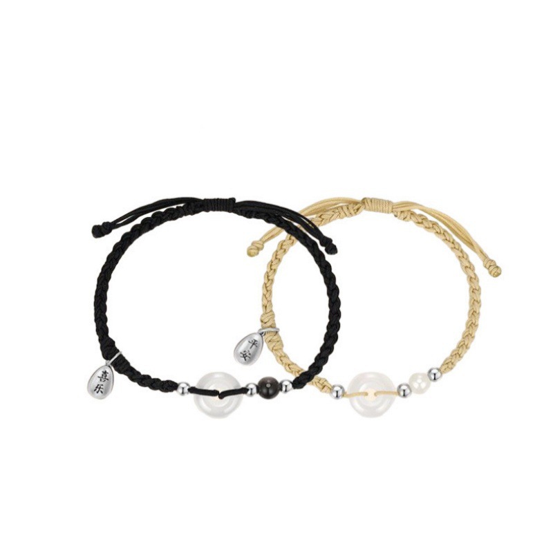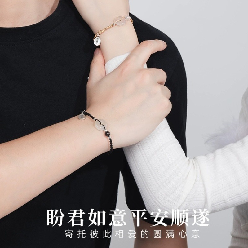 999 Foot Silver White Chalcedony Ping An Buckle Couple's Hand Rope Ins New Chinese Design Ping An Joy Woven Sterling Silver Bracelet