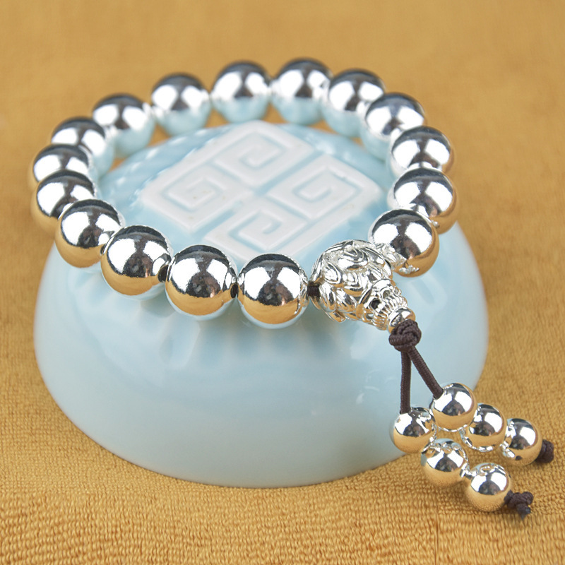 | nameOriginal | 999 Silver Bracelet Men's Round beads bracelet women's Buddha head rosary bracelet couple handmade 99 pure silver simple bracelet jewelry |