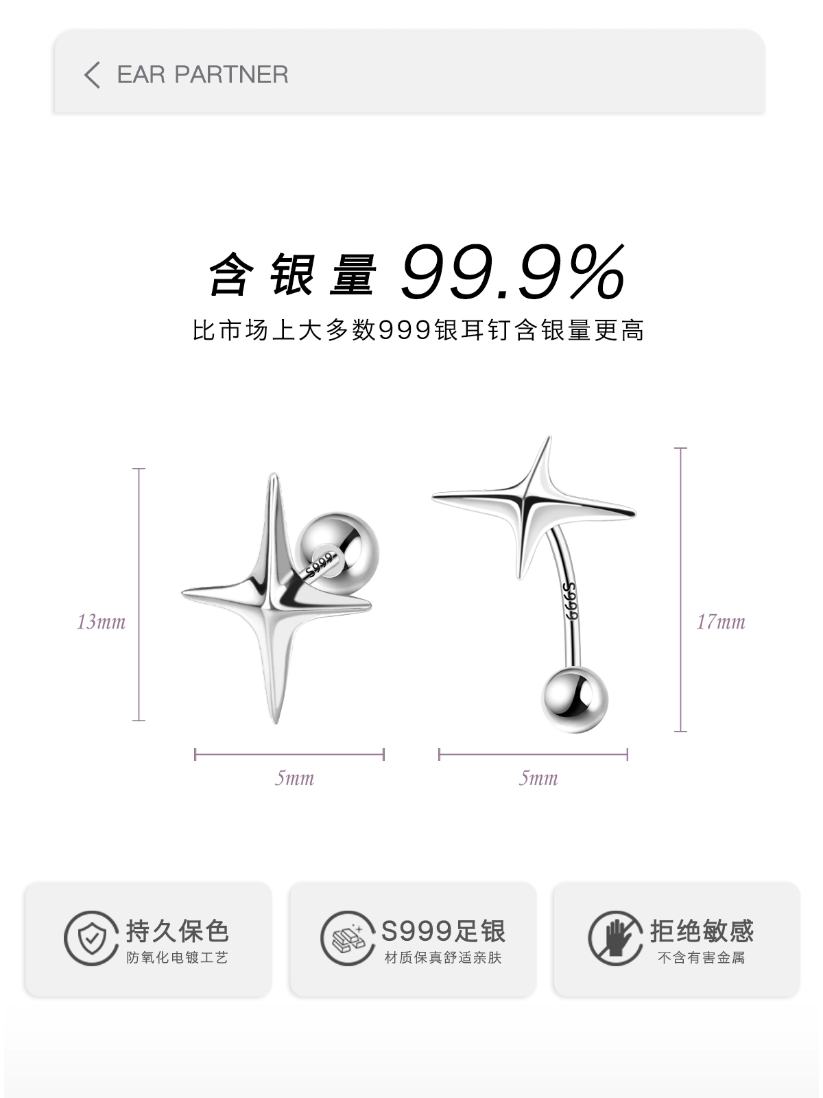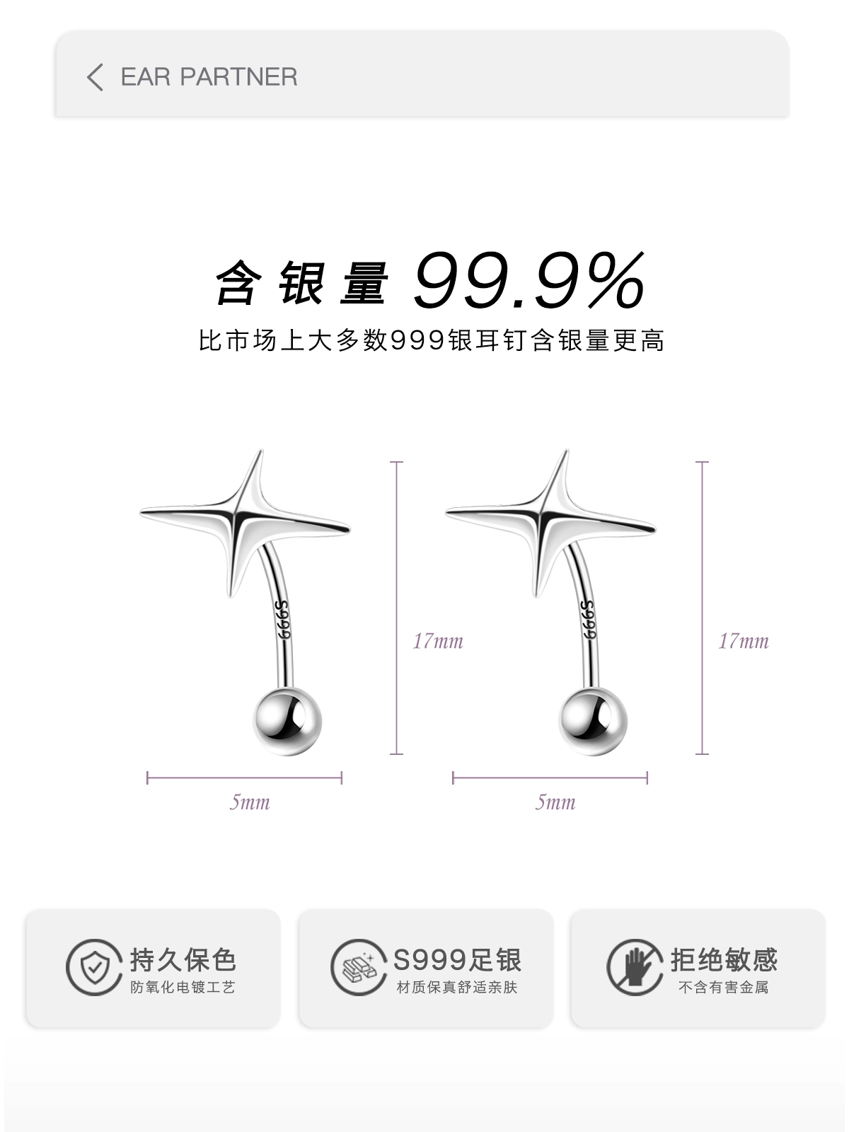 | nameOriginal | 999 silver earrings for women, sterling silver high-end earrings, niche earrings, new 2024 hot style star screw earrings |
