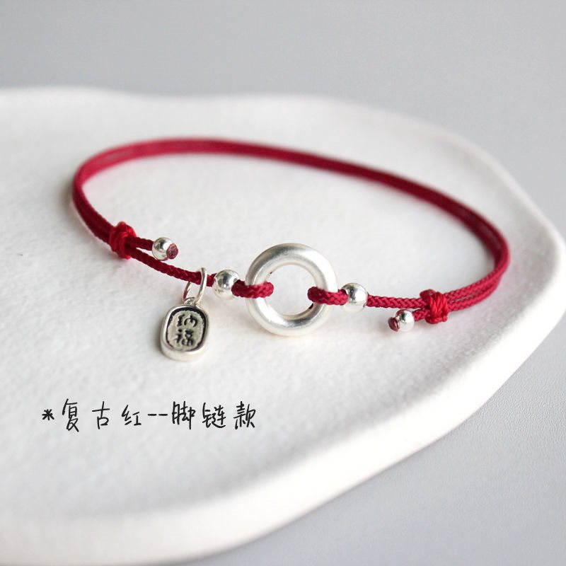 | nameOriginal | 999 Silver Safety Buckle Red Rope Woven Anklet Women's 2022 New Year of the Tiger New Year Gift |