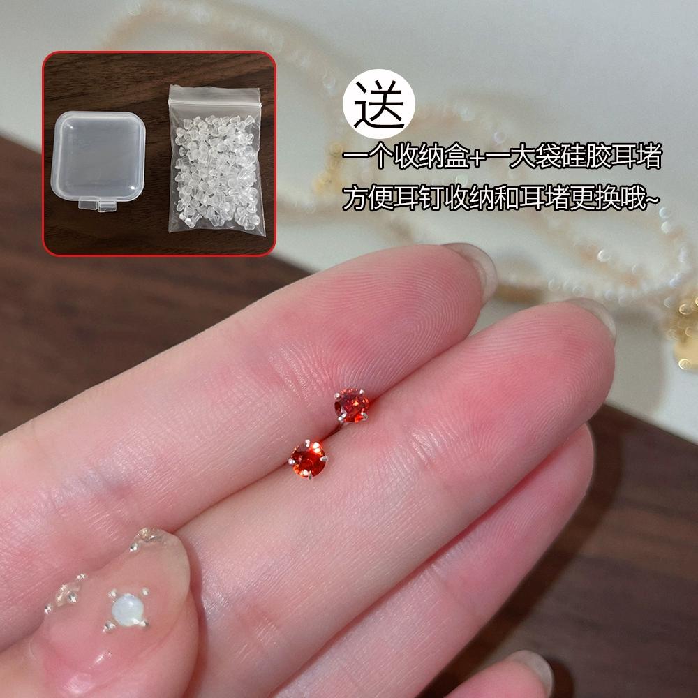 999 sterling silver earrings for pierced ears, no removal of ear bone nails for sleeping, colorful zircon cochlear nails, ear sticks, autumn and winter earrings for women