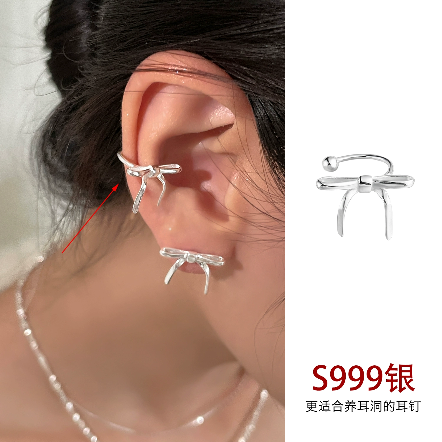| nameOriginal | 999 sterling silver earrings new 2024 hot style earrings for pierced ears high-end butterfly ear clips for women without pierced ears |