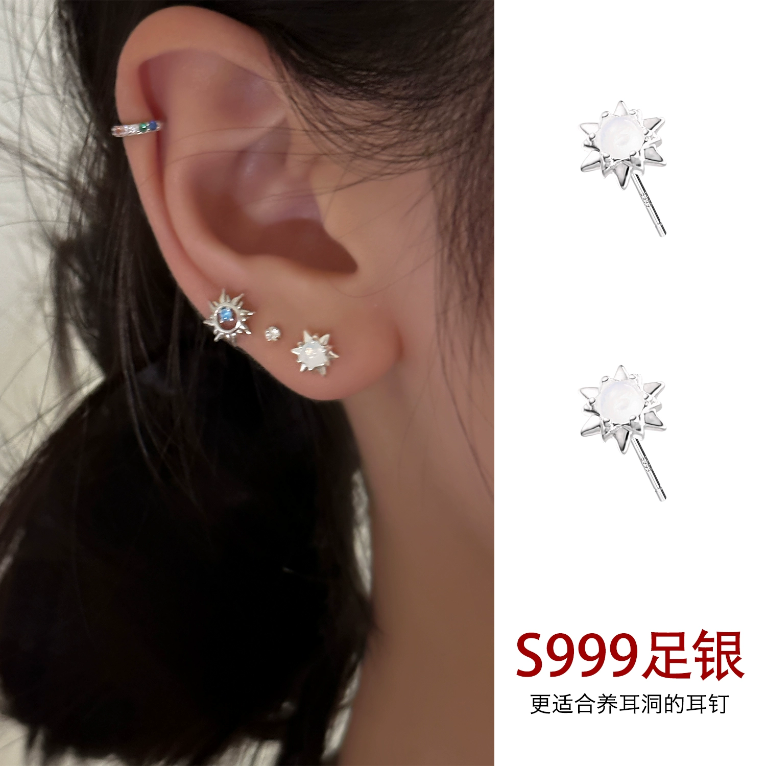 | nameOriginal | 999 sterling silver small sun earrings for women, high-end earrings, niche unique earrings, small and exquisite earrings |