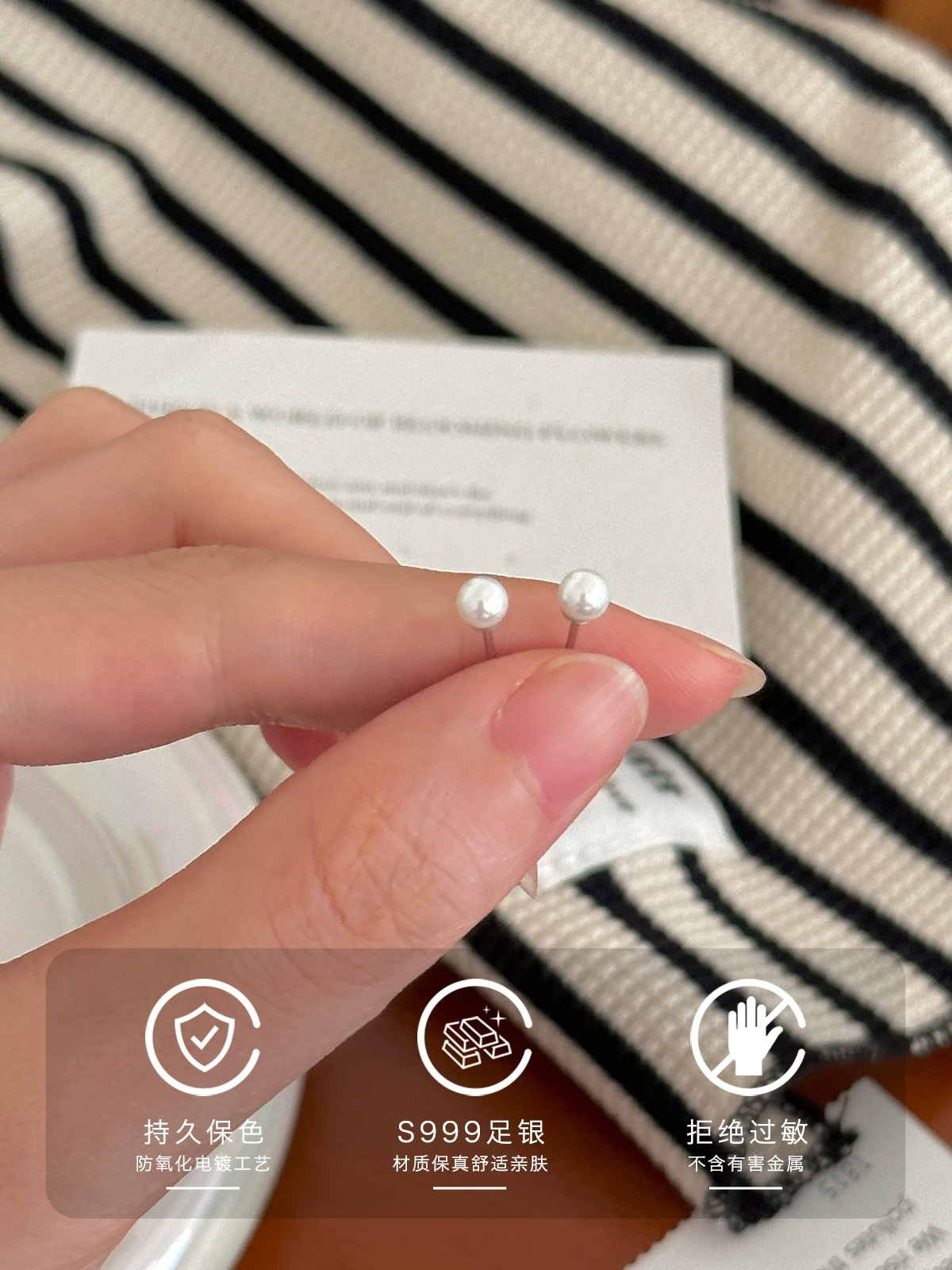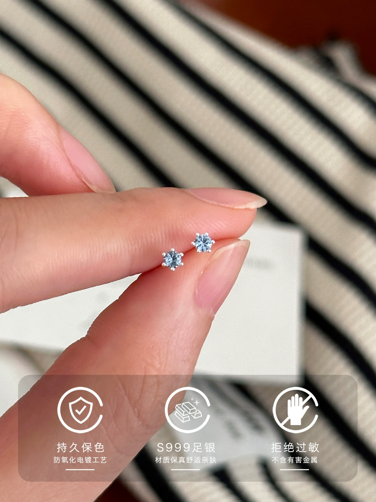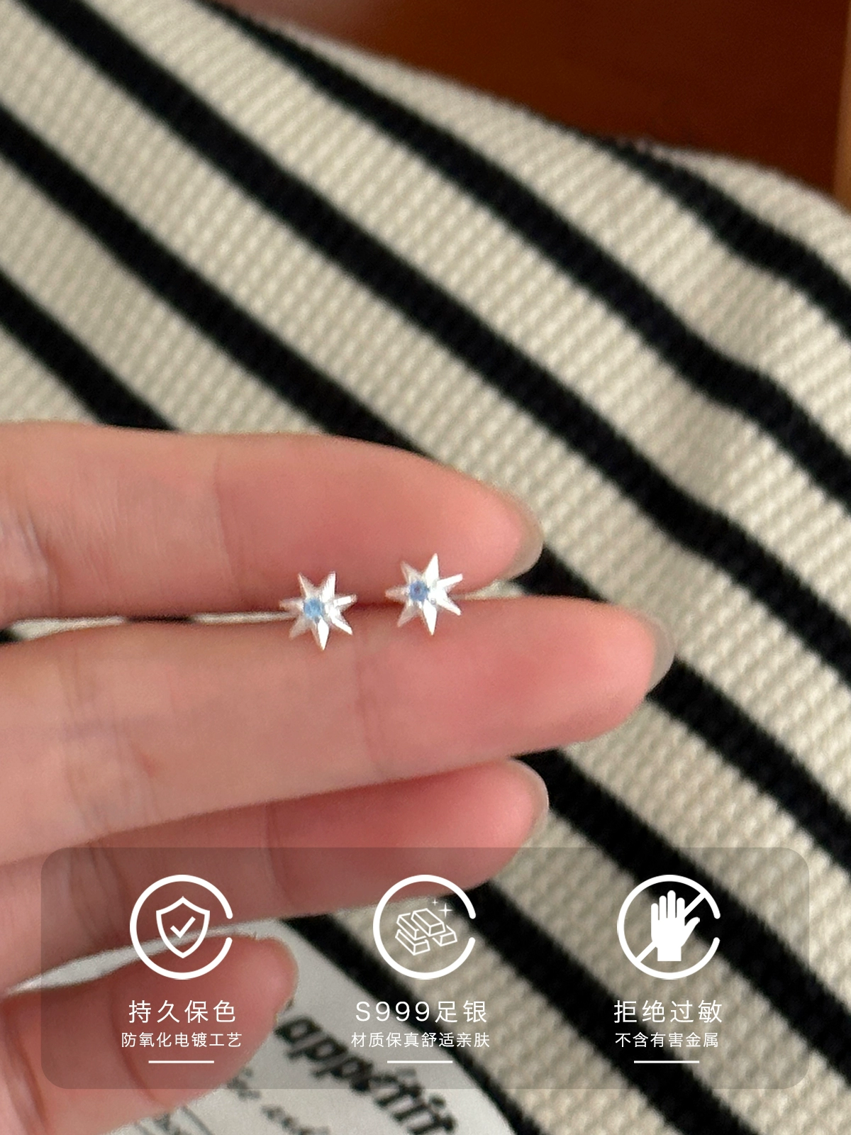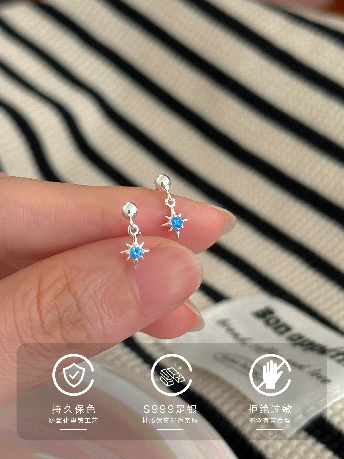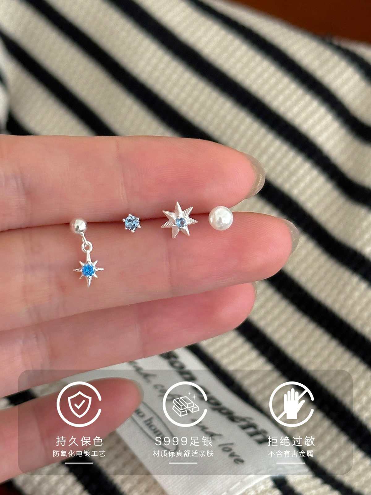 999 sterling silver star earrings, high-end blue zircon ear bone nails, ear piercing, silver earrings, pearl earrings for women