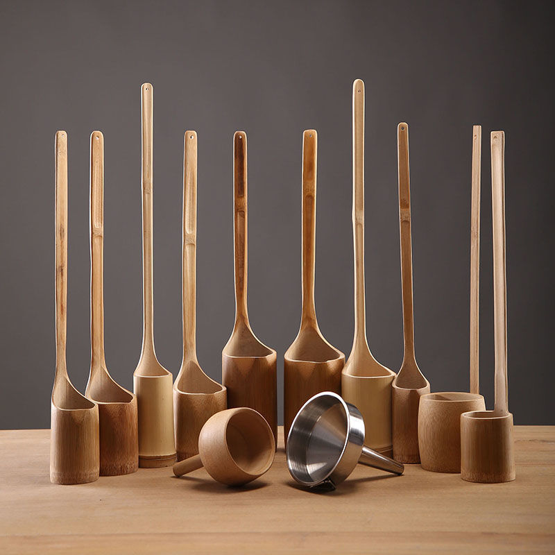 9QXC funnel wine lift wooden household long handle wine spoon wine dispenser wine spoon oil spoon for kitchen