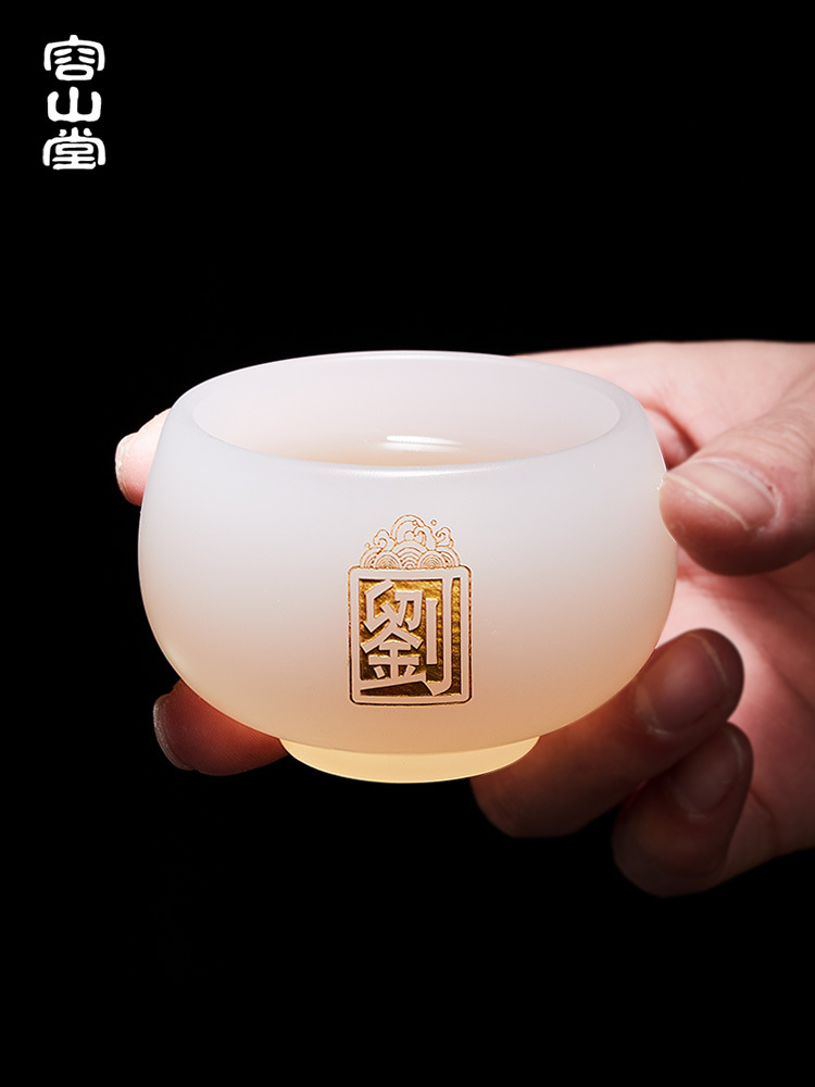 9QXC sheep fat jade porcelain master cup tea cup single Cup Jianzhan personal tea imitation Jade glaze hundred family name tea set