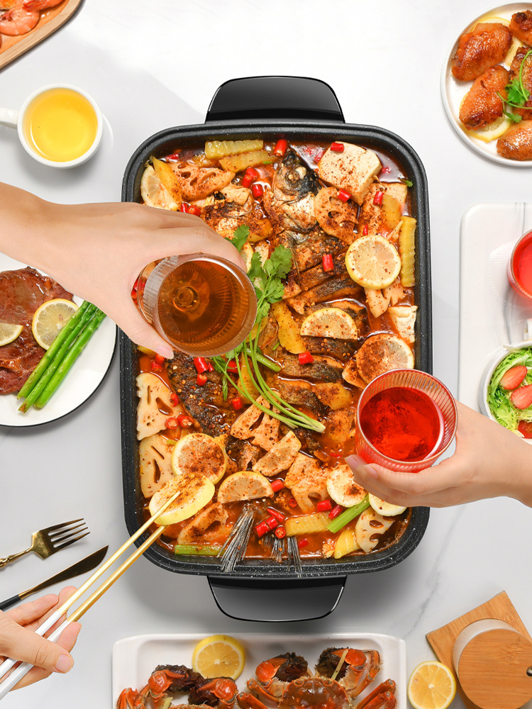 | nameOriginal | 9V7T hot pot barbecue integrated pot commercial paper fish special pot household hot pot fish oven electric baking tray |